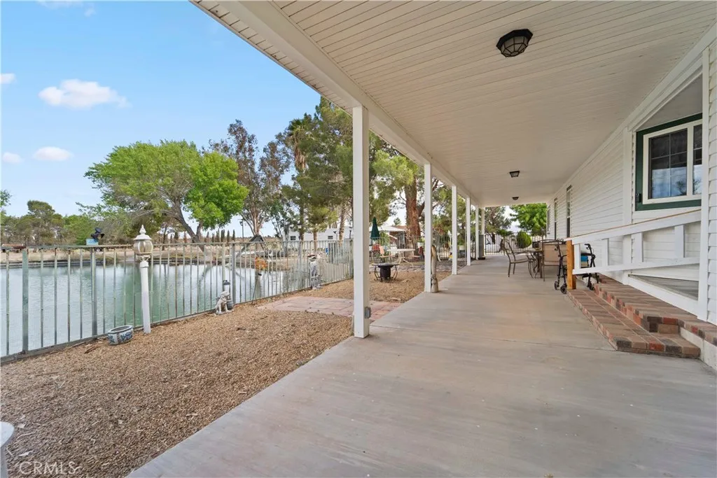 Life is better at the lake!! This 1.5 acre parcel located in the beautiful cove of Lake Jodie offers great views of the lake on an expansive corner lot that is fully fenced. The manufactured home is on permanent foundation with a covered front and back porch that is perfect for spending time outside enjoying the lake. Step inside the home and you have a laundry/utility room with washer/dryer hook-ups, a kitchen area that is open to the dining room and large living room with views of the lake. The primary bedroom has an en-suite bathroom with double sinks, soaking tub and walk in shower. The property has many mature palm trees and other shade trees. Besides amazing views, and a lakeside home, this property also features a large 40x80 metal shop with a roll up door that is perfect for working on projects and storing boats, jet skis or UTV's. And if that wasn't enough there is also an RV storage building and several outbuildings that can be used for overnight guests and containers for ample storage. This property is a MUST SEE! Lake Jodie is located in Newberry Springs, a 15 minute drive from Barstow and only a few miles from Interstate 15. The common area of Lake Jodie offers residents a community space for BBQ's, a boat launch, playground, and designated swimming area. Come out and see all that Newberry Springs has to offer, if you are looking to escape from the city and bring your water and desert toys, this is your HOME! **Septic has been inspected and certified, brand new leach line installed!