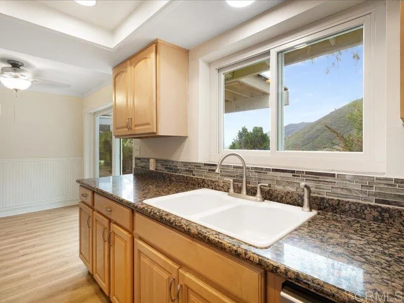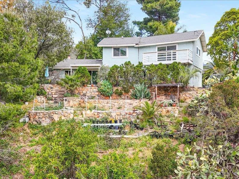 A diamond in the rough perched atop a mountain, this unique Fallbrook property offers unmatched privacy and panoramic views across 4.52 acres. Surrounded by mature trees and natural beauty, the home includes 2 bedrooms and 2 bathrooms, plus two additional bonus rooms and a third full bath, all with scenic views. The land features a seasonal stream at the base, a semi-flat area where a greenhouse once stood, and terraced slopes near the home that are ideal for planting or future expansion. Inside, the home showcases new luxury vinyl flooring in the living room and kitchen, a cozy fireplace, skylights that fill the space with natural light, and $40,000 in upgraded Andersen double-pane windows. Additional highlights include a stainless steel refrigerator, granite countertops, newer washer and dryer, hardwood floors in the primary bedroom with deck access, and a tile shower with sleek glass enclosure. Outdoor amenities include two small ponds with drip irrigation, multiple patios perfect for entertaining, a guava tree, oversized 2-car garage, and a private road leading to the seasonal creek below. Avoid Huntley Road and any dirt roads when driving to the property, see uploaded MLS photo for driving directions. Quiet, private, and full of potential, this is Fallbrook living at its finest.