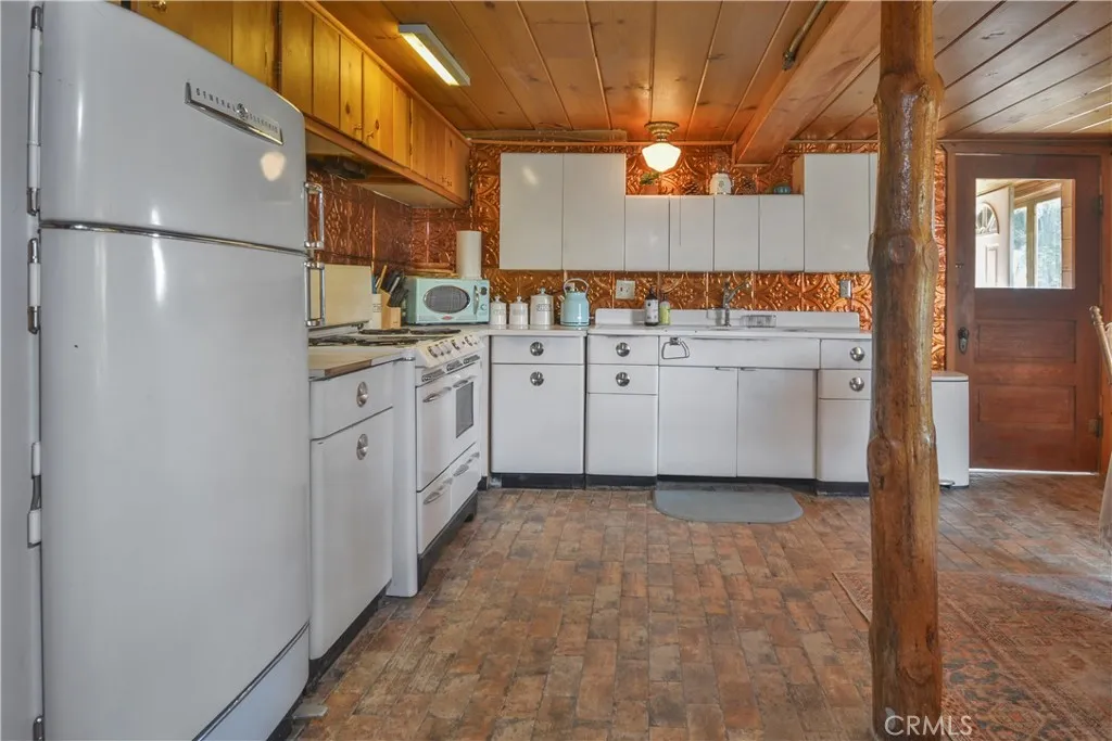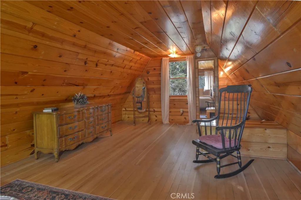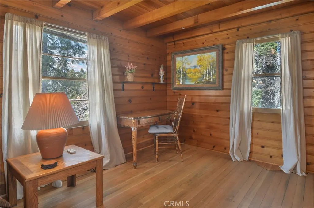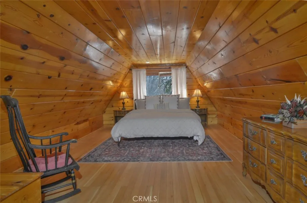 New decking and driveway improvements are a major bonus to this vintage cabin! Tucked away in the breezy hills of Green Valley Lake, this updated beauty blends vintage charm with modern conveniences. Every inch of the interior has been thoughtfully remodeled, refinished, or updatedhighlighted by upgraded plumbing and electrical systems, a fully updated bathroom, and heated brick floors in the kitchen. The original wood floors have been lovingly restored, adding timeless character to the upper levels. Enter through the cozy lower level, featuring an open-concept kitchen/dining area, a stylish bath with a walk-in shower, and a spacious laundry/work/storage room. Newly carpeted stairs lead to a large lodge-style living room with a striking granite fireplace & deck entrance. To the right of the fireplace, is a newly finished bedroom also with deck access. The top level boasts a spacious & secluded primary sleeping area, ideal for restful mountain slumber. While some exterior work remainsand is reflected in the pricethe setting is unbeatable. The National Forest is your backyard & offroading access is up the street. Outdoor enthusiasts will love the year-round adventure opportunities. Experience everything this old style beauty & Green Valley Lake have to offer.