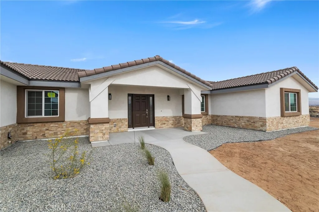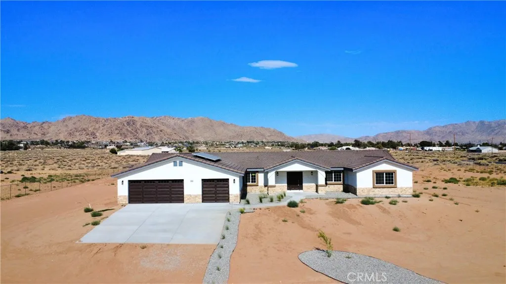 Welcome to your dream home in Apple Valley, where modern elegance meets wide-open freedom and breathtaking desert views. As you arrive, the peaceful setting of this newly built ranch-style home immediately welcomes you. Nestled on a spacious 2-acre lot, the possibilities are endless, whether youre envisioning a private retreat, a place to park your RVs and toys, or even space for horses to roam. Step inside and instantly feel at home. The bright open floor plan flows effortlessly, with natural light pouring through large windows and highlighting the sleek, modern finishes. At the heart of the living area, a beautiful electric fireplace offers warmth and ambiance, perfect for cozy evenings or entertaining guests. Just beyond, the gourmet kitchen steals the show. Youll fall in love with the sparkling quartz countertops, stylish cabinetry, and eye-catching chandeliers that add a touch of luxury. Its a space made for both everyday living and unforgettable gatherings. Down the hall, youll find the spacious bedrooms that offer comfort and flexibility. The master suite is your personal sanctuary, complete with its own bathroom and a roomy walk-in closet. The laundry room add convenience to the day a day routine. Step outside to the covered patio, where endless panoramic views of the surrounding mountains create the perfect backdrop for your morning coffee or evening glass of wine. With room to create your ideal outdoor lifestyle, this space is ready for your vision, from gardens to corrals to outdoor kitchens. This home is perfect for truck owners, RV lovers, horse enthusiasts, or