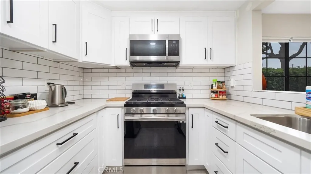Located in the desirable Heritage Park gated community, 12125 Foster Rd #1 is a well-maintained 2-bedroom, 2-bathroom end-unit townhome offering 1,142 square feet of thoughtfully designed living space. This two-story home features an open-concept layout with a bright living room, gas fireplace, and upgraded kitchen complete with granite countertops, stainless steel appliances, and a breakfast bar. A downstairs half-bathroom adds convenience for guests. Upstairs, the spacious primary bedroom offers vaulted ceilings, dual closets, and a private vanity area. A shared full bathroom includes separate vanity and privacy areas, while the second bedroom features its own sink and vanity, ideal for flexible use as a bedroom or home office. The home includes central air, recessed lighting, a private concrete patio, and a two-car attached garage with laundry hookups and direct home access. As part of a peaceful, landscaped community, residents enjoy access to a swimming pool, spa, and walking paths. Conveniently located near major freeways and the Metro station, this home offers easy commuting and access to shopping, dining, and entertainment. Perfect for first-time buyers or investors, this move-in-ready townhome blends comfort, style, and convenience in a central Norwalk location.