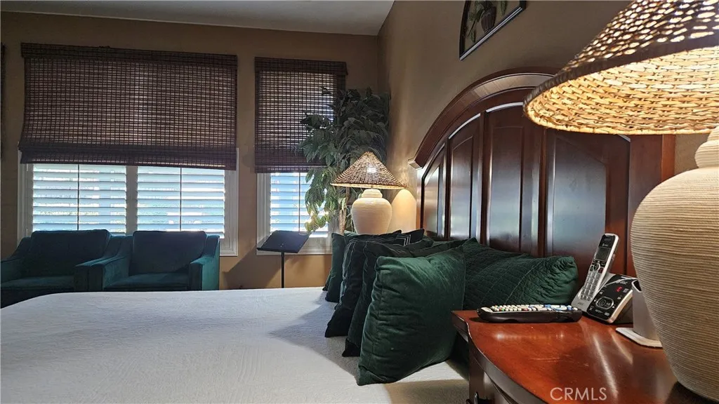 Nestled in the Heritage Lakes planned community, this stunning single-story home features the perfect blend of luxury and comfort. Featuring 3 spacious bedrooms and 2.5 bathrooms, the residence sits on a generous 12,632 square-foot lot within a peaceful cul-de-sac, ensuring privacy and serene surroundings. A charming walkway welcomes you to the front entrance, setting a warm and inviting tone. Inside, the foyer opens to a beautifully designed great room where large windows showcase views of the expansive backyard. A striking fireplace flanked by custom built-in shelving serves as the rooms centerpiece, while an arched hallway leads to the primary suite, laundry room, and direct garage access. To the left, the heart of the home awaitsa dream kitchen complete with exquisite Brazilian granite countertops, a large island ideal for meal prep or casual dining, abundant cabinetry, a double sink, and a dishwasher. Adjacent to the kitchen, the sunlit dining nook preseents a cozy space for meals and meaningful conversations. Down the hall, a versatile den or office space provides added functionality for modern living. The additional bedrooms are generously sized, feature ample closet space and sharing a well-appointed full bathroom conveniently located for guests and family alike. The primary suite is a private retreat, featuring plush carpeting, stylish window treatments, and timeless plantation shutters. The luxurious ensuite bathroom includes dual vanities, two oversized walk-in closets, a soaking tub, and a spacious shower creating a true spa-like experience at home. Step outside