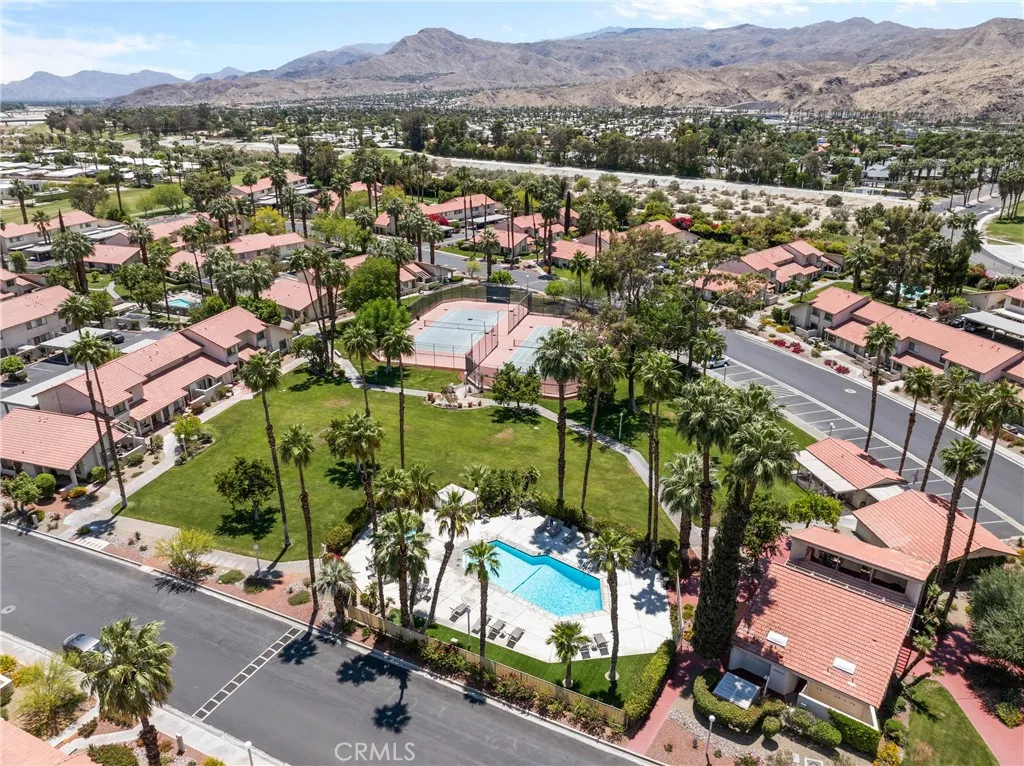 **Stunning Home in Mountain Shadows Community - South Palm Springs** Discover an incredible opportunity to own a piece of paradise in the desirable Mountain Shadows community! This gated neighborhood features six sparkling community pools and tennis courts, all nestled next to the scenic Tahquitz Creek Golf Course. Step into this gorgeous 2-bedroom, 1.5-bathroom home, where an airy open floor plan greets you. The high vaulted beamed ceilings add an elegant touch, making this space feel both bright and inviting. The versatile den can easily be converted into a third bedroom, making it perfect for guests. Enjoy two outdoor patios designed for entertaining or simply unwinding in the stunning surroundings. With FEE land that you own and the added benefit of short-term rentals (registered with the City of Palm Springs), this property offers a fantastic potential for vacation rental income alongside being your dream vacation home. Don't miss out on this meticulously maintained community - its a must-see! This condo is available for a 12 month lease at $2,970 a month with all the furniture included in the lease.Call listing agent for more information.