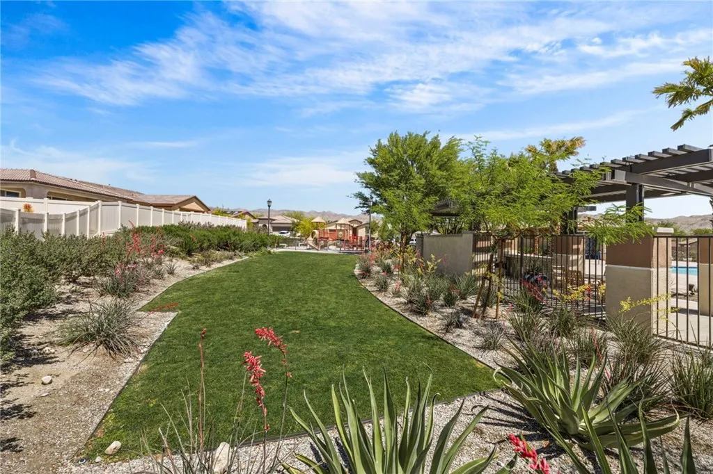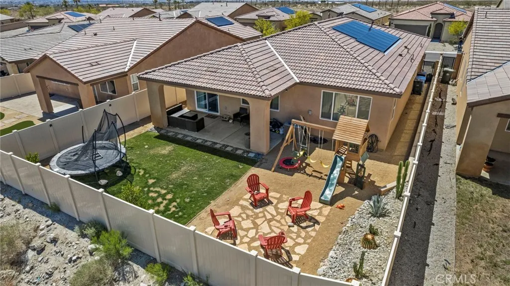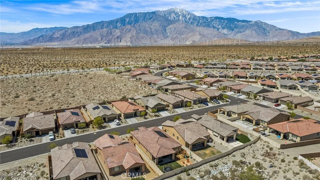 New Single-Story Home in the Skyborne Community Desert Hot Springs, CA is completely move in ready and on a Cul-de-sac! Welcome to this beautifully designed newly constructed home located in the sought-after Skyborne master-planned community. Featuring a thoughtfully laid-out single-story floor plan, Solar Panels for energy savings, fully landscaped back and front yards, this residence offers the perfect blend of comfort, convenience, and style. Inside, youll find three spacious secondary bedrooms located off the entry, ideal for family members, guests, or a home office setup. The heart of the home is an open-concept living area that seamlessly integrates the kitchen, dining, and great roomperfect for both everyday living and entertaining. Sliding doors lead to a private Covered patio, with large backyard, extending your living space outdoors for effortless desert lifestyle enjoyment. The owners suite is privately situated in the rear corner of the home, complete with a walk-in closet and an en-suite bathroom for ultimate comfort and privacy. Located in Ara, a new collection of single-family homes, residents will enjoy access to community amenities, including a community park, 2 pools, spas, tennis courts and dog park. low HOA fees, and a prime location just 10 minutes from vibrant Palm Springs. Enjoy nearby shopping, dining, and outdoor recreationincluding the iconic mineral springs and easy access to Joshua Tree National Park, just an hour away. This is an excellent opportunity for first-time buyers, families, or anyone looking for a low-maintenance home in a growing com