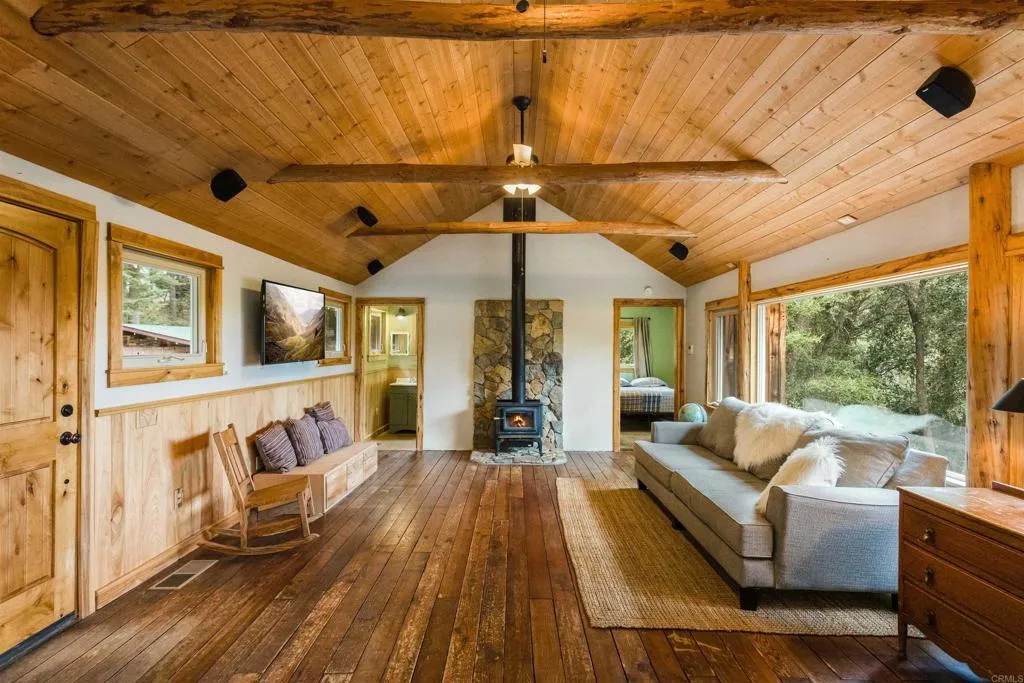 Nestled on nearly two private acres in the heart of Palomar Mountain, The Treetop Lookout offers a peaceful and secluded retreat, where majestic woodland views and the soothing sounds of nature take center stage. Enjoy a serene escape, perfect for those seeking tranquility without sacrificing accessibility. Located just moments from the recreation and beauty of Palomar Mountain, youre never far from adventure. ~ Wake up each morning in your cozy, 1-bedroom, 1-bath mountain cabin, built in 1952, nestled among towering firs and oaks. Sunlight gently filters through the trees, creating a serene atmosphere. Thoughtfully updated with modern amenities while preserving its vintage charm, this cabin offers the perfect space to relax and unwind. A beautiful knotty alder front door welcomes you into the home boasting breathtaking views of the forest setting. Inside, the original hardwood floors, the wood-burning stove in the living area, and the vintage kitchen with cheerful breakfast nook exude both character and comfort. With newer windows throughout, the forest is framed as living art, bringing nature indoors. ~ Practical elements, such as forced air heating and cooling, a basement workspace, on-site laundry and even a RV hookup, make this cabin as functional as it is beautiful. Enjoy endless possibilities for weekend projects or creative pursuits with a detached shed, carport, and cargo container with 220-volt electric setup. ~ Step outside and discover more room to unwind. Whether you enjoy gardening, stargazing, or simply basking in the peaceful stillness, theres ample space to