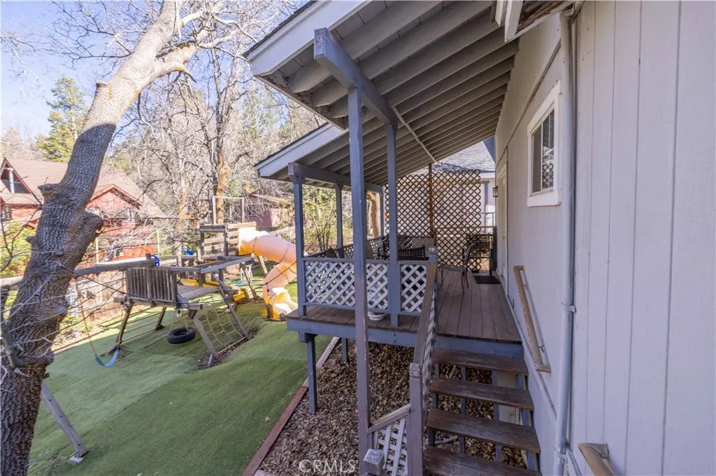 Looking for a smart investment? This centrally located Bear Lake property has been a successful rental, offering both income potential and personal enjoyment. Just steps from the National Forest and minutes to the Village, lake, and slopes, the main home features 3 bedrooms, 2.5 baths, an attached garage, and three spacious decks. The open great room showcases vaulted tongue-and-groove ceilings, a wood-burning stove, and bar seating and new flooring. The separate guest unit (not an ADU) has been tastefully updatedcurrently used by the owner while the main house is rented. The backyard is fully upgraded with turf, a built-in trampoline, and a custom playground, all set in a peaceful, woodsy location.