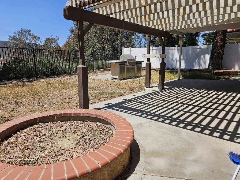 PRICE IMPROVEMENT!!! This Beautiful home has 4 Bedrooms, 3 Full Baths and 3-Car garage and offers an open / light-filled floor plan with high vaulted ceilings and stunning hillside views. As you enter through double doors, you're greeted by a spacious tiled entryway that opens into a bright living room featuring upgraded laminate wood flooring. The formal dining area, complete with sliding glass doors, provides seamless indoor-outdoor access to a large, low-maintenance backyard where you can enjoy scenic views of mature trees and the surrounding hills. The cozy family room has been updated with new carpet and a stylish, remodeled fireplace, creating a warm and inviting space. It flows effortlessly into the well-appointed kitchen, which features tile flooring, tile countertops, an island with extra storage, and expansive sliding glass doors that lead to your private outdoor retreat. Entertain with ease at the custom BBQ island equipped with a refrigerator, beer tap, and fire pitideal for summer gatherings and weekend relaxation. On the main level, you'll also find a versatile den/office space with new carpet, which could easily be converted into a fourth bedroom, a convenient guest bath is located just adjacent. The separate laundry room, located off the two-car garage, adds practicality to everyday living. Upstairs, the generous primary suite features high ceilings, a walk-in closet, and an ensuite bathroom with dual sinks, a separate shower, and a newly remodeled enclosed toilet area. Two additional spacious bedrooms offer ample closet space and share a full hall bath wit