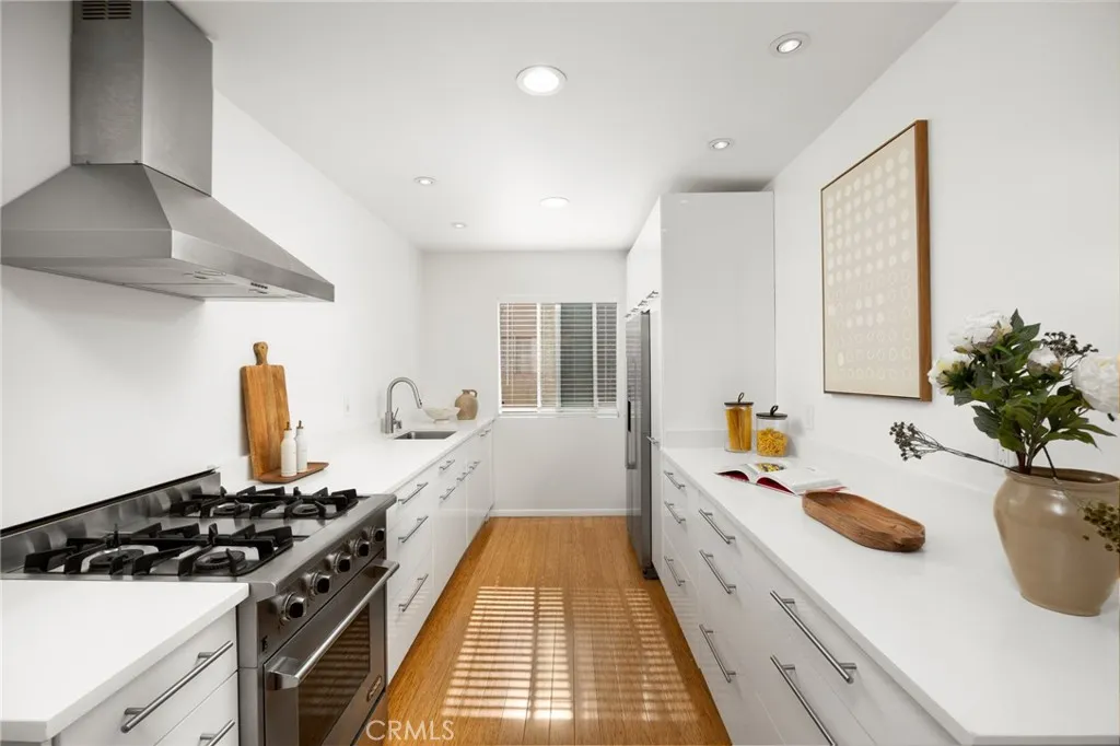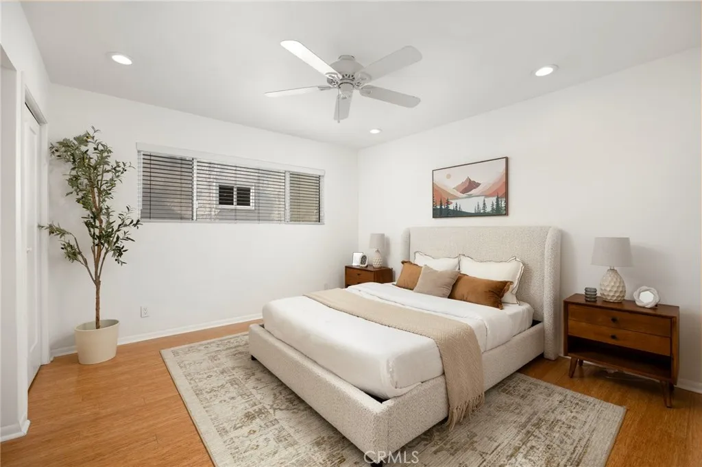 BACK on MARKET-no fault of the property. Stylish top-floor corner condo in Windsor Square, thoughtfully renovated with modern finishes in a classic mid-century building. Bright and airy with bamboo wood floors, recessed lighting, and a sleek kitchen featuring quartz countertops and professional-grade appliances. Enjoy a spacious private patio, two comfortable bedroomsincluding a primary suite with a remodeled bath and walk-in closetplus in-unit laundry, newer central AC, two deeded parking spots (NOT tandem), and a private storage unit. Community amenities include a pool and sauna with low HOA dues. Ideally located near Larchmont Village, Koreatown, and the Purple Line Metro, with excellent walkability to shops, restaurants, and markets. A move-in ready gem with timeless appeal.