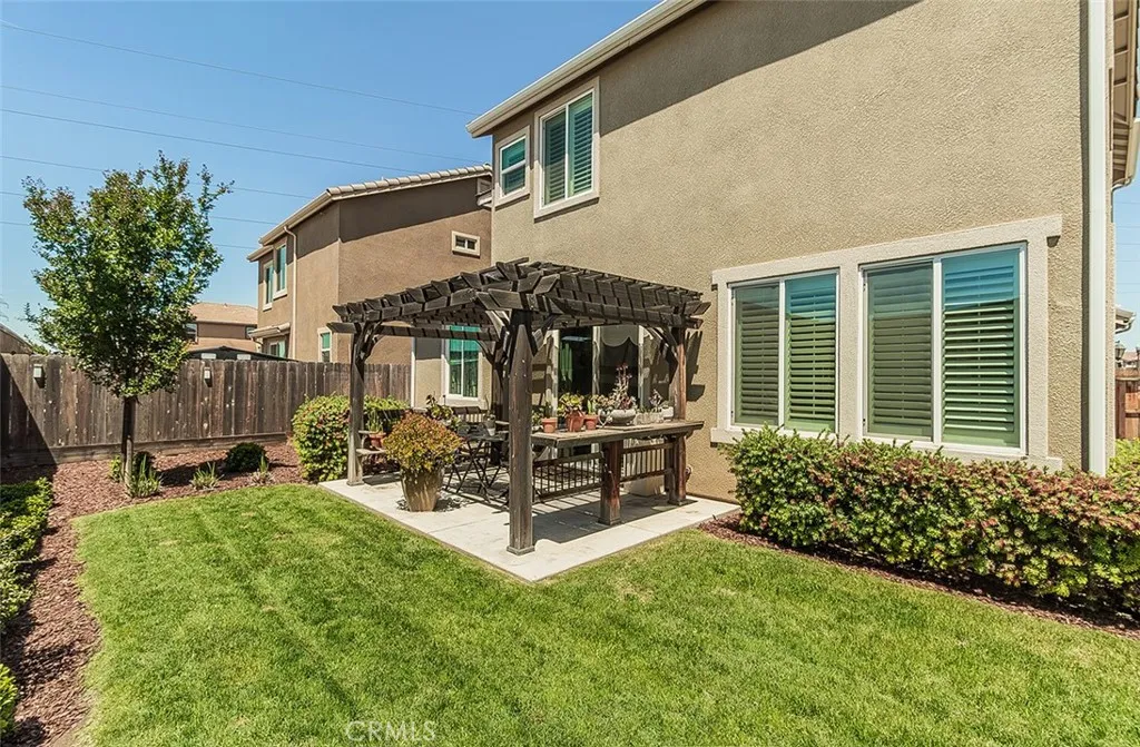 Back On The Market! Owned Solar is only the beginning to all the features this fabulous Liberty Square McCaffrey Home Community has to offer. The outstanding floor plan features 3 bedrooms with a 4th room downstairs that could be a bedroom, office/study or whatever works for your lifestyle. The home has loads of designer decorator features including tiled floors, custom pendant light fixtures and ceiling fans, shutters, custom wall colors and real brick walls that make this home so very special. The barn-like door off the kitchen lends creativity and flexibility to your own lifestyle and needs. The kitchen has a very open feeling with quartz countertops and subway backsplash, custom cabinetry, eating bar and customized pantry door. In addition there is a nice dining room area for all your eating and entertainment needs. Upstairs are three additional bedrooms with 2 bathrooms including a spacious primary bedroom and bathroom and walk in closet. Leading to the two rear yards from the interior are two sliding doors that give you additional living space for your BBQing and relaxation. The well designed backyard is your very own spacious retreat that includes a pergola. The home has an exterior brick wall that lends itself to privacy since this is one of the few homes with no rear neighbors and is freestanding and not attached to a neighboring fence.