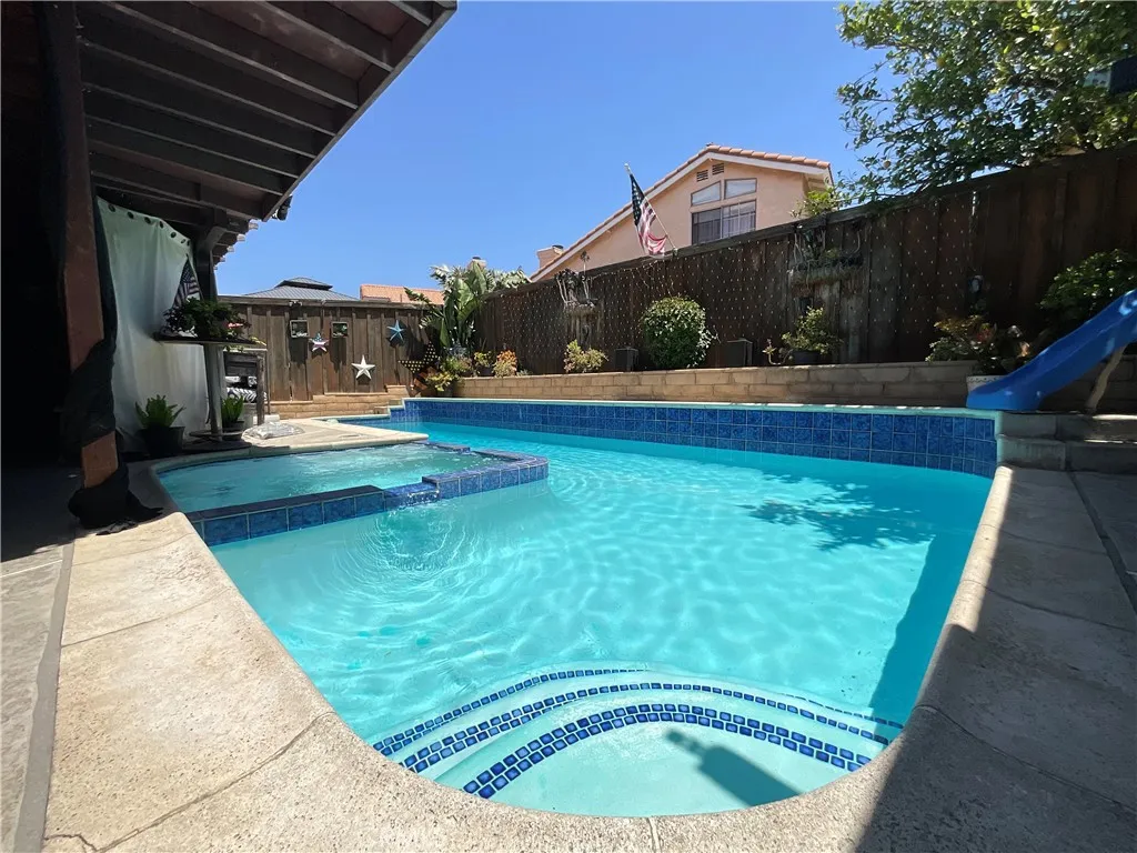 Welcome to your new pool home in the desirable Walnut Village community of Fontana. This beautifully maintained 2-story home features 4 spacious bedrooms (all upstairs), 2.5 bathrooms, and 1,600sq. ft. of living space. This home features an open kitchen with tile countertops, custom backsplash, and pristine black cabinets. Upstairs, youll find the primary bedroom is spacious with two generous closets a dual vanity, and a private ensuite bathroom. The additional three bedrooms and a full bath will be found upstairs as well. Downstairs youll find a half bathroom convenient for guests. Some upgrades to the home include: a fairly new roof, new laminate and tile flooring, and new windows. You will step outside to the ample covered patio space leading to the pristine pool and jacuzzi perfect for gatherings and hot summer days. Conveniently located near schools, parks, shopping, and easy access to the 210 and 15 freeways, perfect for commuters!