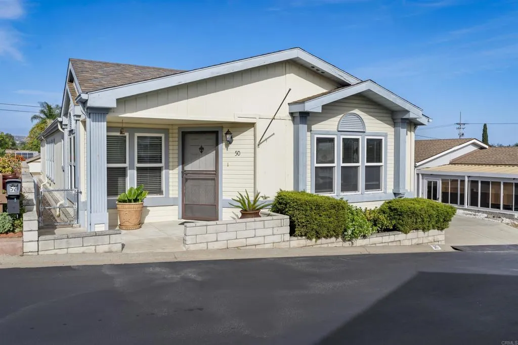 Welcome to a Fabulous Home in the Foothills of San Marcos One of the Best-Kept Secrets in 55+ Living community! Stepping into comfort, convenience, and style with this beautifully single-level, land-owned manufactured home in the highly desirable Foothills of San Marcos community. This fabulous home has 1,848 square feet of thoughtfully designed living space, featuring 3 spacious bedrooms, 2 full bathrooms, laundry room and one of the very few homes in the community with a full-size, attached 2-car garage a true standout! Inside, you'll be welcomed by vaulted ceilings, an abundance of natural light, and an open floor plan ideal for both entertaining and everyday living. The large living room and dining room areas provide plenty of room to relax or gather with family or friends. Recent updates include new flooring, most of the interior has been painted, and a fully remodeled primary bathroom that brings a modern touch of luxury. Step outside to your private back patio, a perfect area for enjoying sunny San Marcos afternoons, evening drinks, or quality time with family and friends. This wonderful 55+ community has top-tier amenities, including: Clubhouse with banquet room, stage, dance floor, and kitchen, Pool & spa, Tennis and pickleball courts, Fitness center and Billiards room with pool tables. Conveniently located near shopping, dining, and major freeways. This is one of the few homes in the community with both land ownership and a full-size 2 car garage! Homes like this rarely come available specially with a two-car garage and land ownership. Dont miss your chance to ow