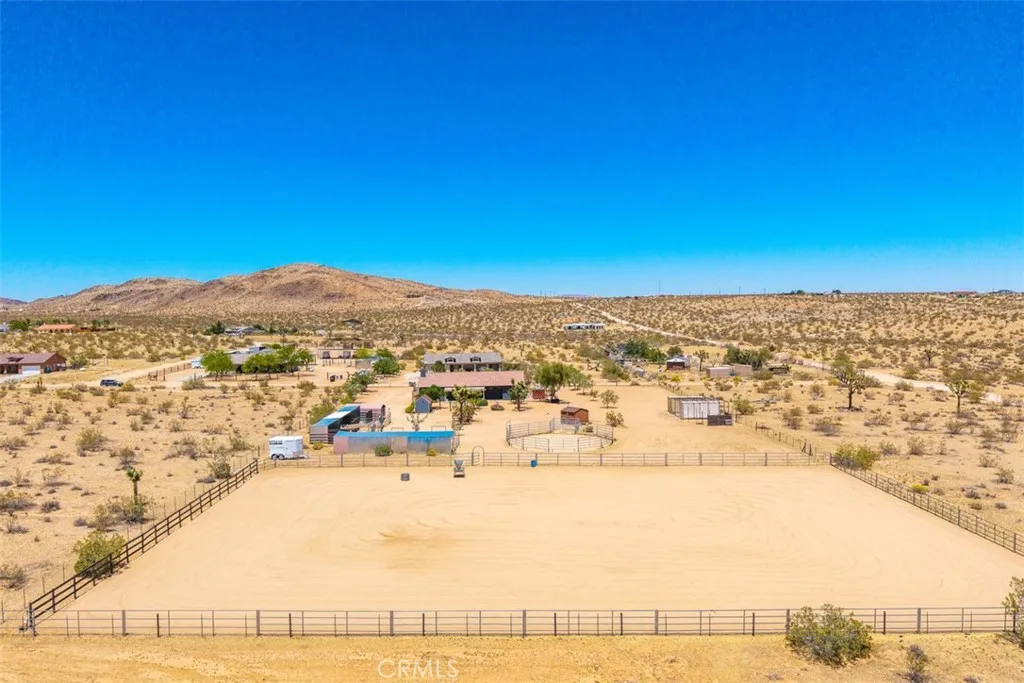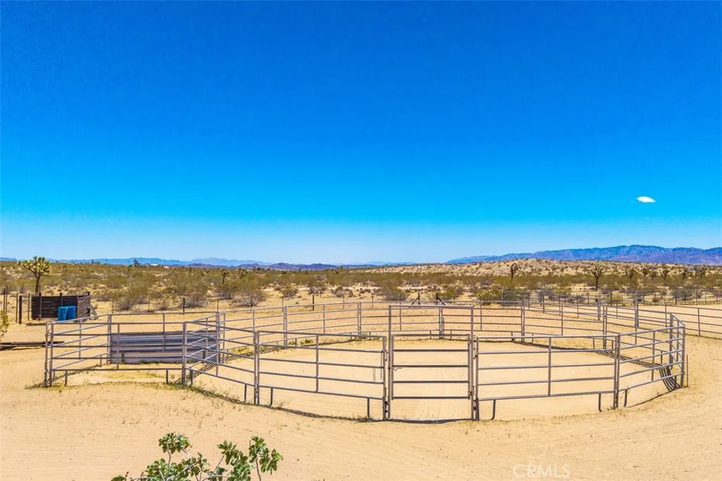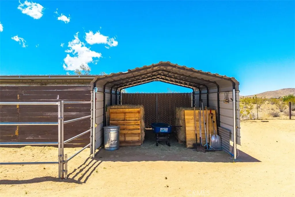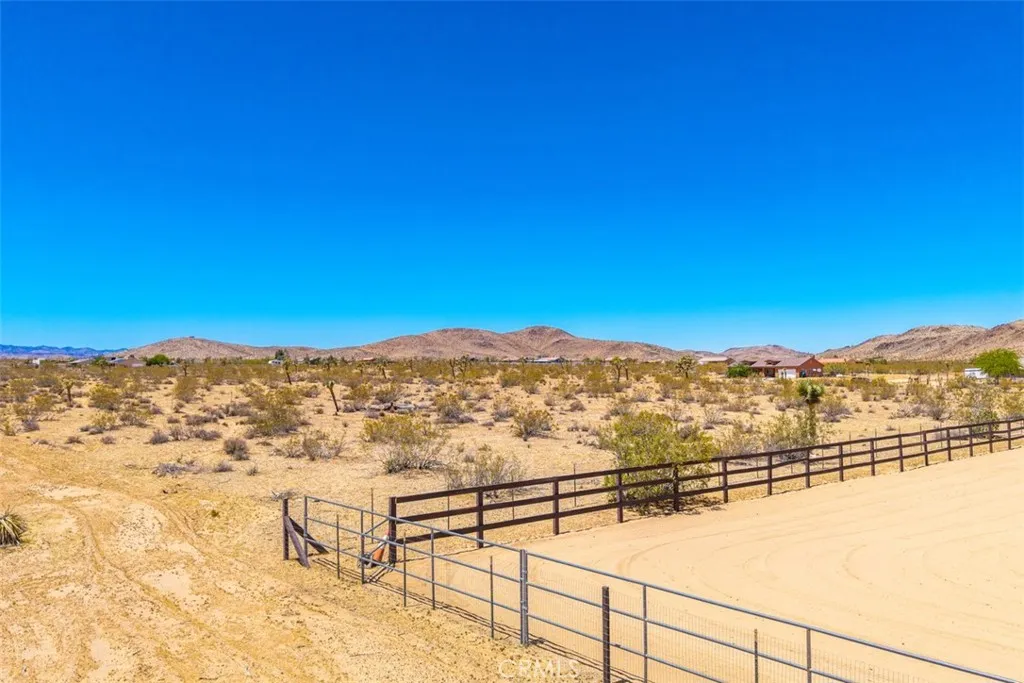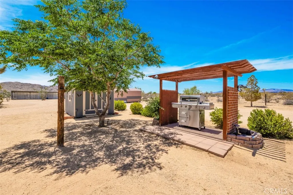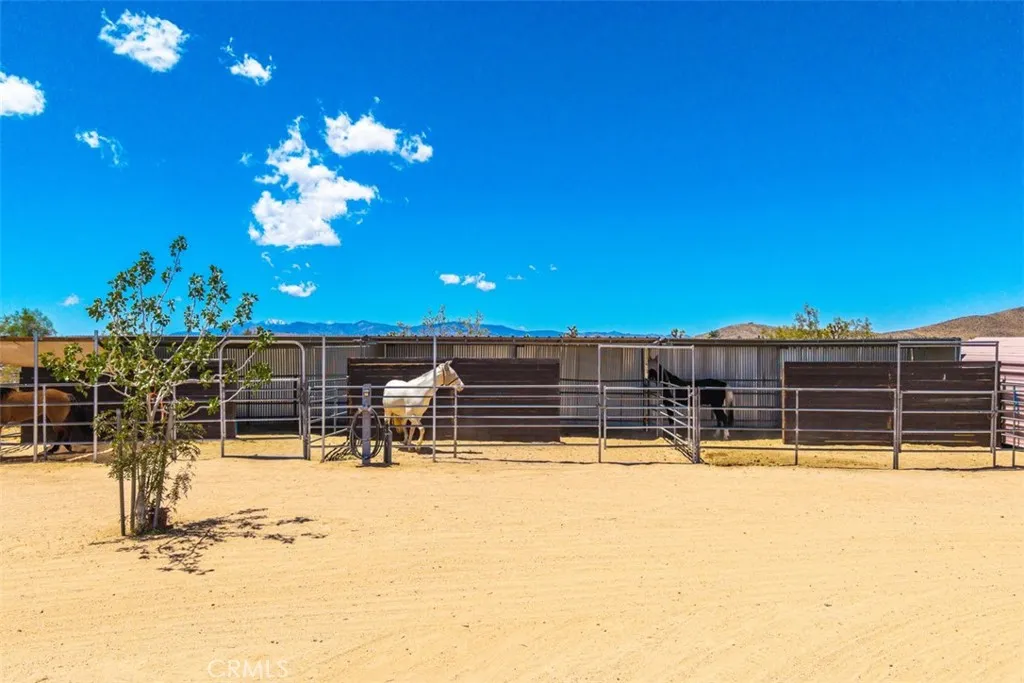 Price Correction Alert-This beautifully updated 3-bedroom, 2-bath equestrian estate is a rare find in Joshua Tree, offering both modern comfort and high-desert charm. Situated on 2.01 acres of fully improved horse property, this 2007-built home features fresh interior and exterior paint and a new mini-split system for energy-efficient cooling. Inside, enjoy an open floor plan with a cozy living room and fireplace, a spacious kitchen with granite tile countertops, a breakfast bar, and a pantryplus direct patio access from both the living room and the primary suite. Step outside to a large covered back patio, ideal for stargazing, outdoor dining, or entertaining at the custom barbecue area. The backyard includes a hobby shed with electricity, a garden shed, a fountain, and mature fruit and nut treesfig, nectarine, pomegranate, almond, apple, and pistachio. For horse enthusiasts, the property is equipped with four covered stalls (24' x 24'), a 60-foot round pen with additional covered stall (90' without), a 175 x 200 working arena, water trough, two tie bars for saddling, a tack shed, and a feed storage area that can be converted into an additional stall. Located in a peaceful area near miles of riding trails and just 25 minutes from Joshua Tree National Park, this property blends equestrian luxury with versatile desert living. And heres the best partif horses arent your thing, the seller will remove all stalls and equipment by close of escrow, leaving a wide-open property with endless potential. Dont miss this opportunity to own a versatile Joshua Tree property with acreage a