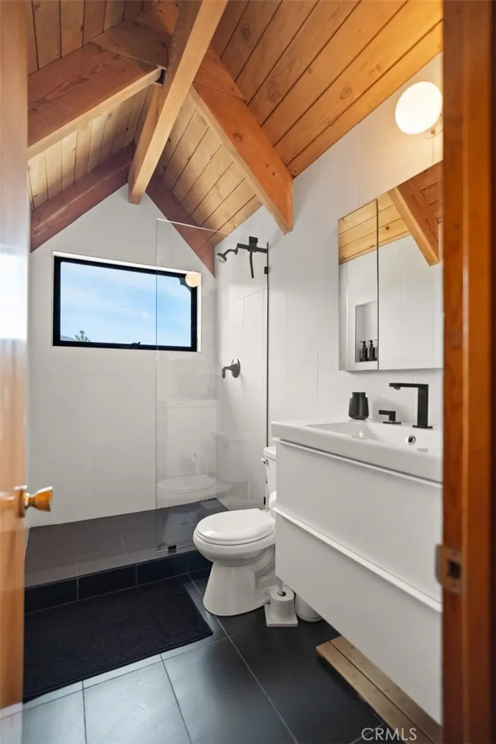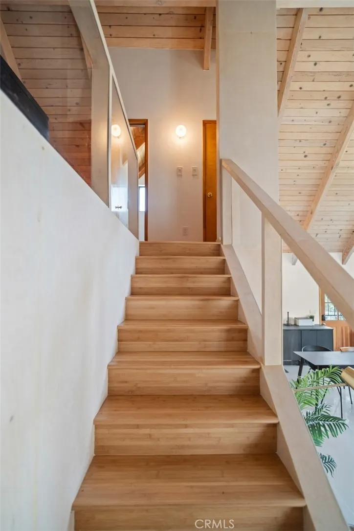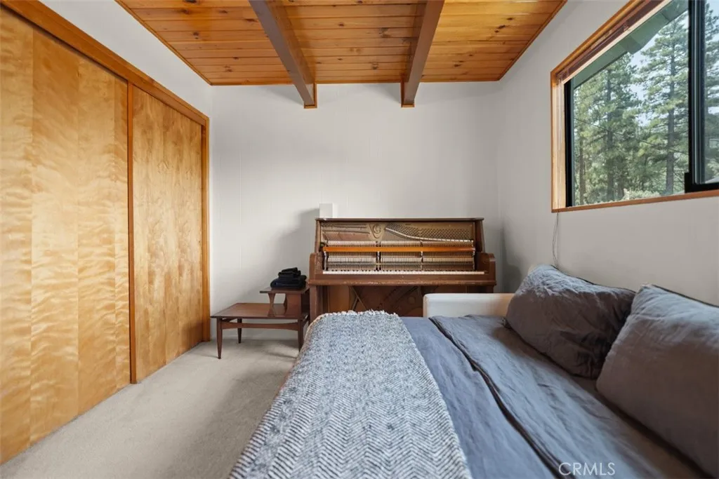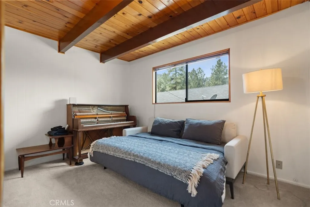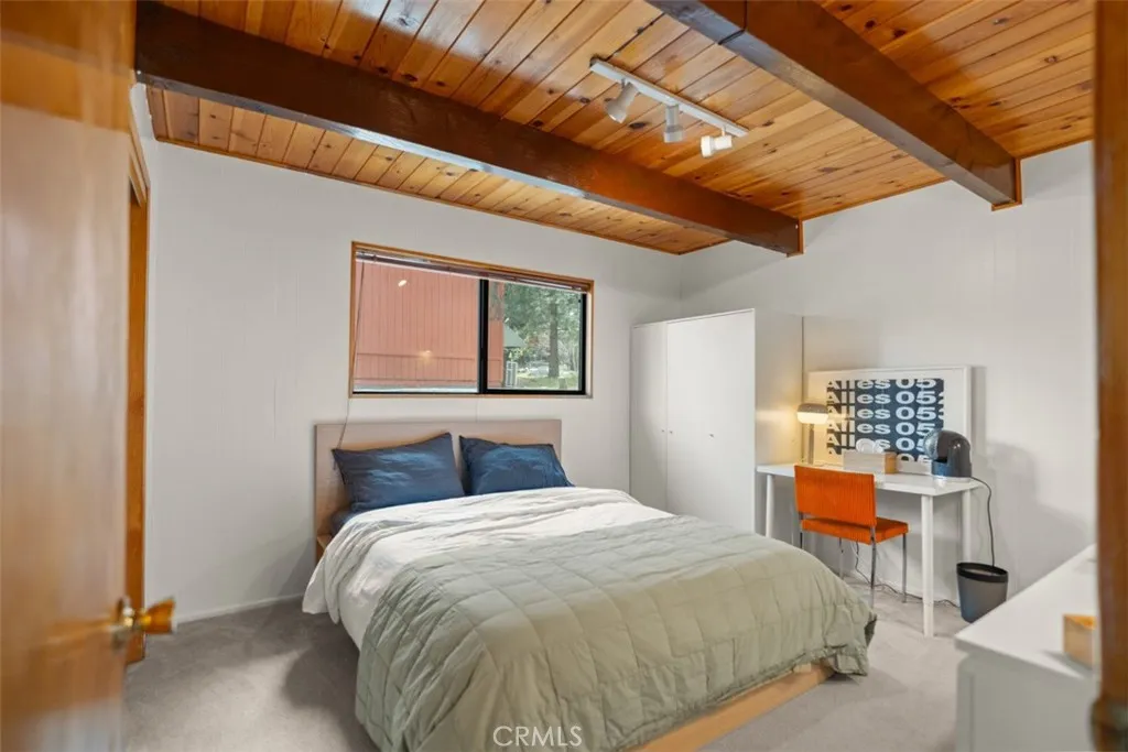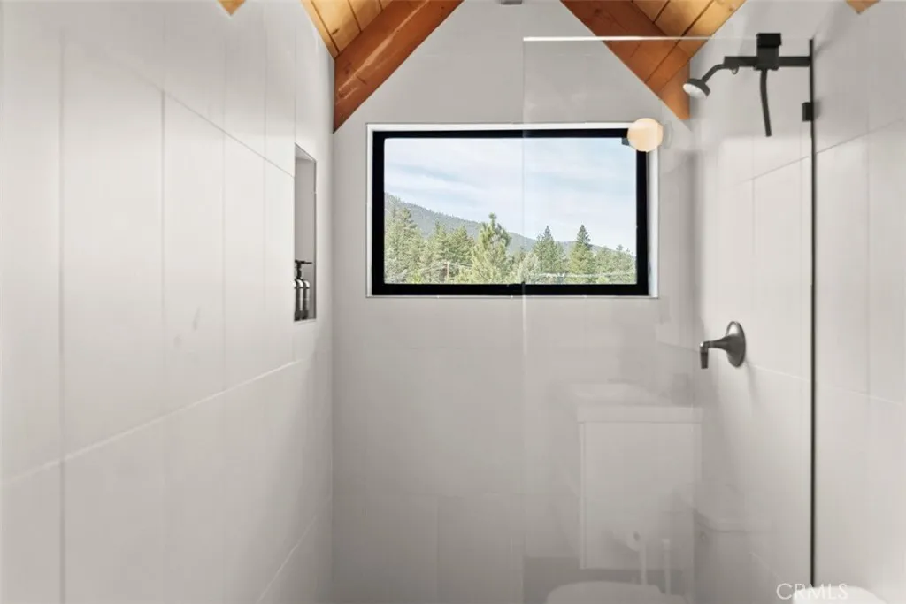 A Modern-Organic Masterpiece in the Pines Stylish, Elevated, and Ready to Enjoy! Welcome to your dream mountain retreat, where striking design meets elevated comfort and forest tranquility. Perched on a 10,746 sq ft lot among towering pines, this fully renovated 3-bed, 2-bath home is a rare blend of architectural sophistication and curated finishes. Step inside to a light-filled interior where high vaulted ceilings with exposed beams soar overhead. Grounded by new glazed matte porcelain tile flooring and white birch-accented walls, the open-concept living space radiates warmth and calm. A rustic brick wood-burning fireplace invites cozy evenings, while dual-pane windows and doors lead to an expansive deck with mountain views. Custom-built stairs with sleek plexiglass railings further elevate the modern aesthetic. At the heart of the home is a show-stopping matte black kitchenequal parts chic and functional. It features custom soft-close cabinetry, a deep under mount sink with matte black fixtures, pull-out trash drawer, and premium appliances: Samsung 30 Wi-Fi wall oven, Samsung cooktop, Bosch 800 Series panel-ready dishwasher, and a Samsung BESPOKE French-door fridge in matte black steel. The new range hood vents outdoors, and all kitchen electrical and plumbing have been fully updated. Two peaceful bedrooms and a fully remodeled main-level bath with soaking tub, matte black fixtures, and glass doors offer restful comfort. Upstairs, the lofted primary suite is a tranquil retreat with its own private balcony and a spa-inspired en-suite showcasing a walk-in shower, tub fill