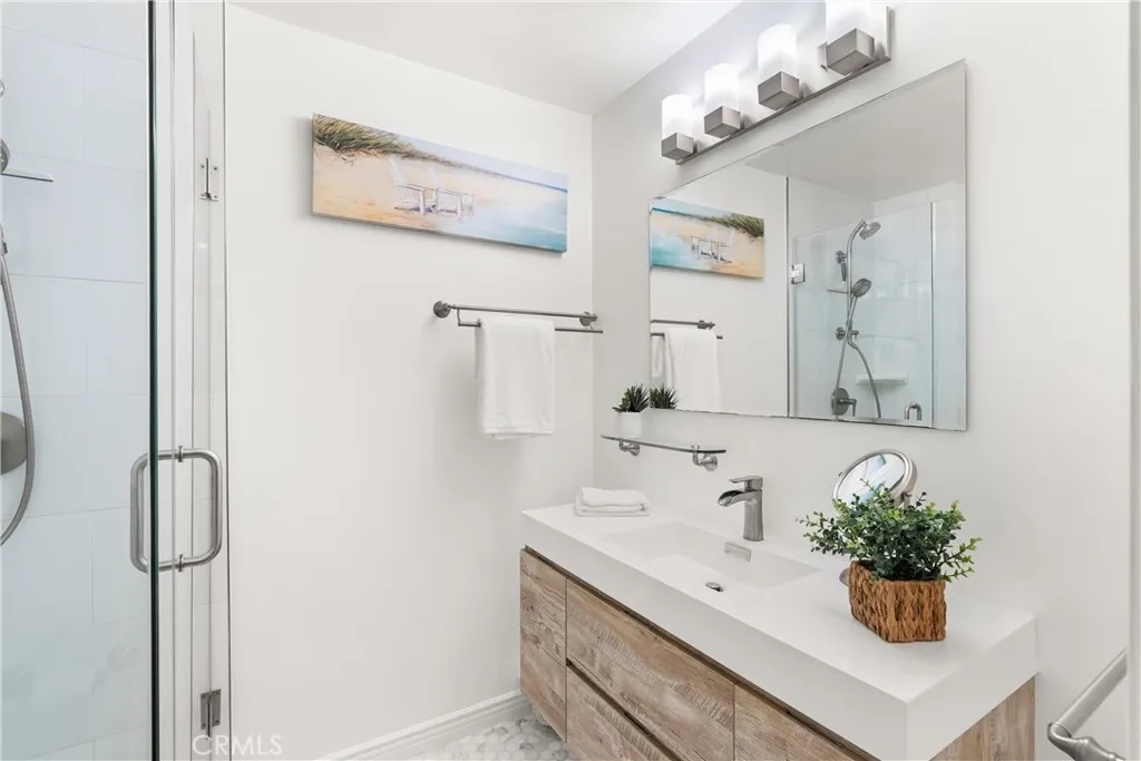 Bright & Private Condo in Brookside Village Location. Welcome to this spacious 975 sq. ft., 2-bedroom, 2-bathroom first-floor end-unit condo in the heart of the desirable Redondo Beach. This condo offers a true sense of retreat, less than a mile from Redondo Beach & Pieran open-concept living area with stylish, durable laminated flooring and a remodeled kitchen and bathrooms. Large windows and sliding glass doors fill the space with natural light and lead to a charming balcony, perfect for morning coffee or dining al fresco. The kitchen features wood cabinetry, granite countertops, stainless steel appliances, a new oversized stainless steel sink, and storage, including a dishwasher, an electric range, and a refrigerator. The primary and additional bedrooms are spacious and light-filled, offering versatile living options. The bathrooms have been beautifully updated for modern comfort and style. Two assigned parking spaces are conveniently located just steps from the unit, along with a personal storage cabinet and a large private storage room. This condo is ideal for beach lovers, just minutes away from South Redondo Beach and the vibrant shops and dining of Riviera Village. Enjoy resort-style living in Brookside Village with amenities including two pools, sauna, tennis courts, clubhouse, well-equipped gym, and rec room with billiards. Located directly across from Alta Vista Sports Park and Redondo Beach Community Gardens, this coastal gem is the perfect blend of modern beachside living and serene community charm.