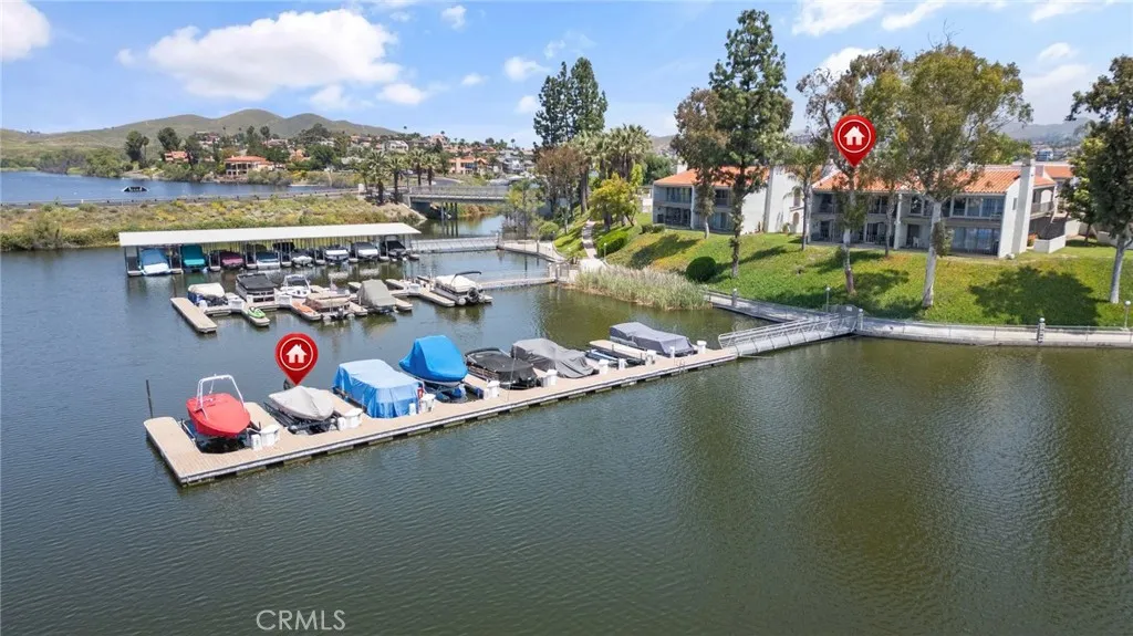 The Sunsets are beautiful from Canyon Lake's Treasure Island! This 36 unit condo complex features it's own private gated access, boat dock deeded to each unit, clubhouse, gym, pool/spa, horse shoe pit and walking trail around the entire island! This immaculate FULLY FURNISHED 2 bedroom, 2 bath, condo located in the exclusive Treasure Island Community within Canyon Lake. The complete remodeled interior including; new windows and doors, kitchen cabinets and counters, both bathrooms with tiled walk-in showers, flooring, wall texture and paint, electrical and plumbing fixtures. The home comes fully furnished as priced. New Heating, Ventilation and Air Conditioning System (Heat pump, air handler and thermostat). Patio remodeled with smooth-coat plaster and tile flooring. Front entry walkway tiled. Single car garage, and an assigned parking spot. Private dock and boat slip, storage locker, power and water. Private slip has a boat lift with two-(2) sets of boat bunks that can accommodate either a pontoon boat or a V-bottom boat. Treasure Island Owners Association dues covers: all exterior building, dock, clubhouse, pool and spa, sidewalks, lights and wrought iron fencing maintenance and repair, landscape maintenance, trash and water. Canyon Lake is a private community with full lake access to residents to enjoy whether its fishing, skiing or just enjoying the waterways. Enjoy the many activities that include the awesome fireworks show that is seen right off of your back patio for 4th of July celebrating or one of the local music events at the Canyon Lake Lodge, Holiday Harbor and