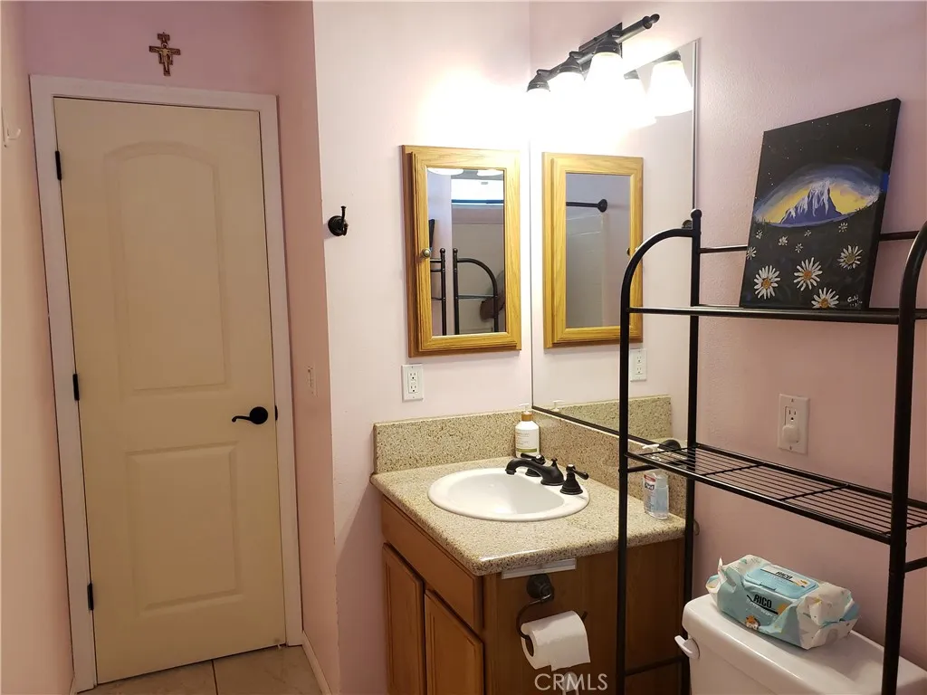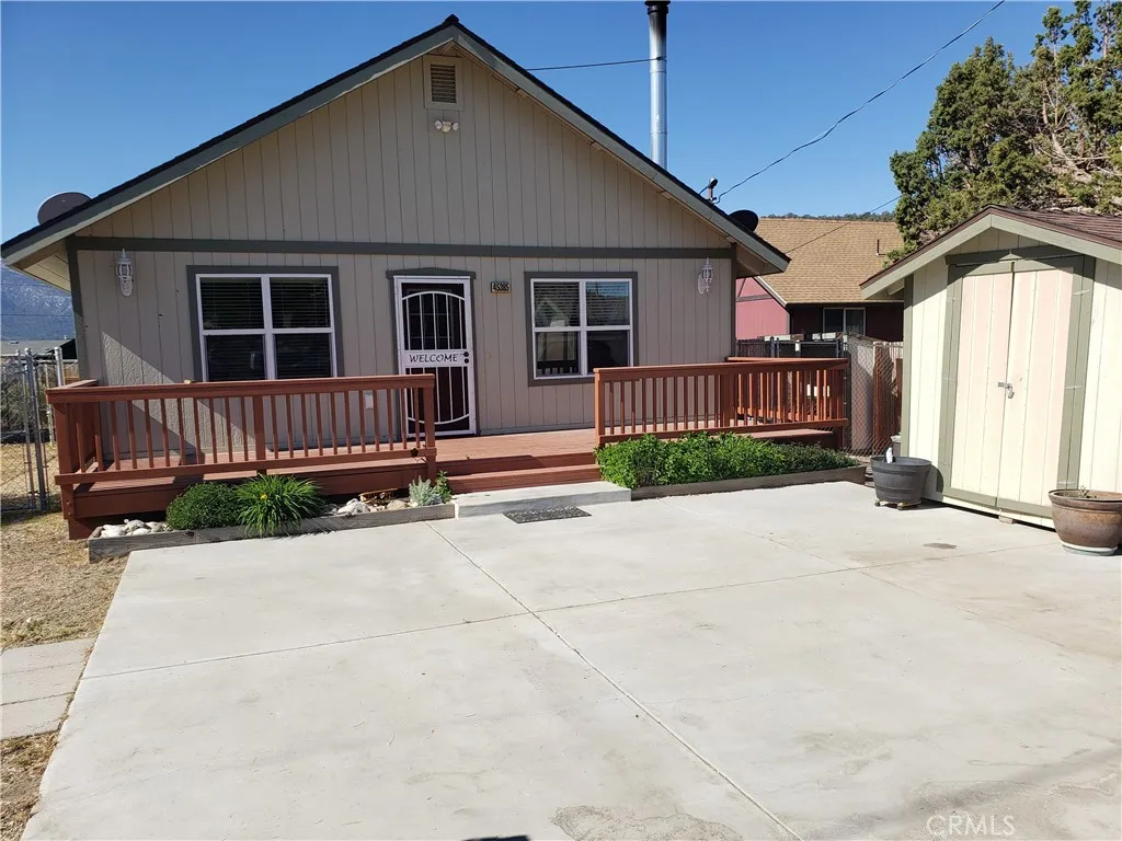 Light and bright with open layout. Vaulted ceiling in living room, with a beautiful free standing wood burning stove surrounded by brick and river rock. Granite counters in Kitchen and Bathroom with ceramic and tile floors in kitchen. Distressed wood flooring throughout with ceiling fans. Larger Front deck and a low maintenance composite back deck. Retractable awning on side of home with concrete pavers leading to a large back yard sitting area. Relax in the back yard spa enjoy our Big Bear stars. Room for an RV or boat on East side of property. Seller has 5 adjacent lots equaling 12,500 s/f for sale, please inquire with listing agent.