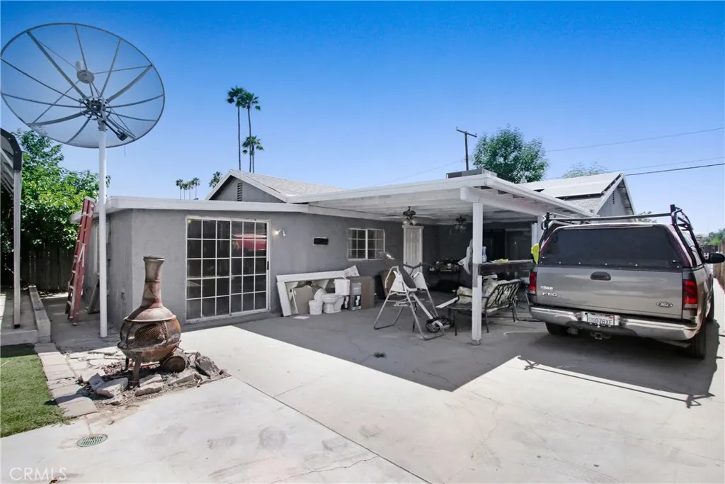 Cute 4 bed 3 bath home completely fenced. White wrought iron fence with gated entry. Drive goes all the way to the back of the lot. There is a 20 x 40 6 inch deep cement slab in the rear of the property covered with an aluminum roof. Large enough to park an RV or perhaps to enclose for other purposes. There is also a large covered rear patio. There is an added room in the rear of the home with a private entrance and bathroom for the 4th bedroom. It is also accessible from the inside. Kitchen is a large galley style with room for a big table. Breakfast counter separates the great room between living room and kitchen. There is a solar plan in place to be assumed by the buyer. See solar plan in supplements. Walking distance to a city park and small strip center with store, restaurant and laundromat and about 1/2 mi from 2 large shopping centers with large anchor stores. New AC unit purchased in September.