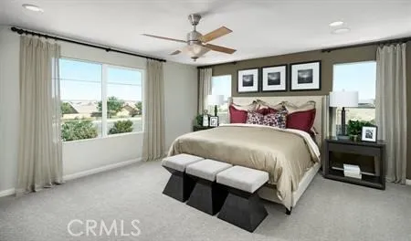 5 bedroom, 3 bath, two-story corner lot home with 8 foot doors throughout. 10' Center meet slider at the Great Room. Ceiling fan pre-wired in Great Room, and all bedrooms. White kitchen cabinets and upgraded Quartz counter tops. Wood laminate flooring in all living areas, tile floors in bathrooms and laundry room, upgraded carpet and pad in all bedrooms and closets. Exterior of the home is in our beautiful wine country elevation. Homeowners will appreciate easy access to 215 freeway, State Route 74 and South Perris Metrolink Station, as well as shops and dining at Perris Crossings Shopping center. Home is estimated to be move-in ready the last week of June! Come on out and tour this home today