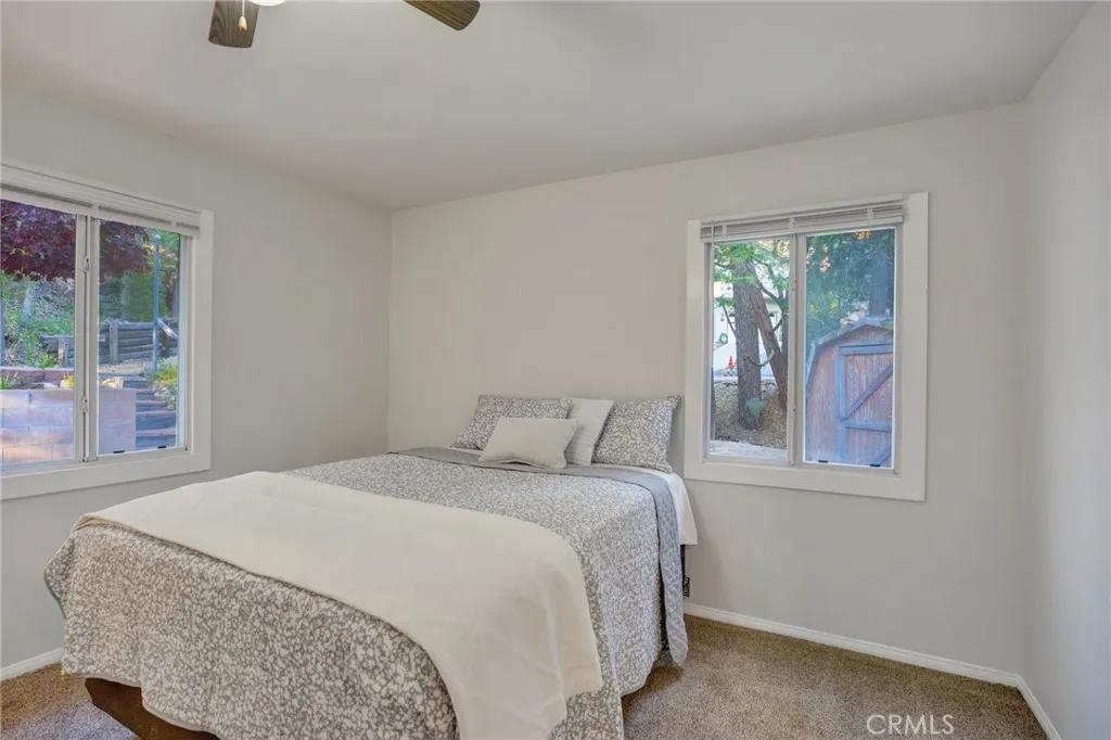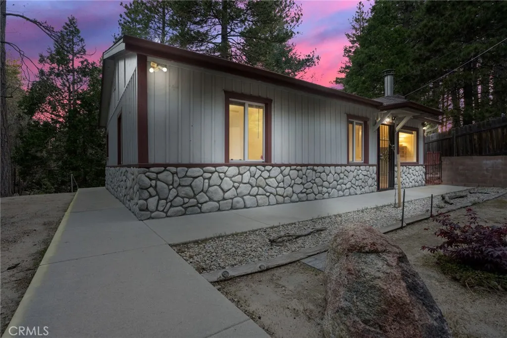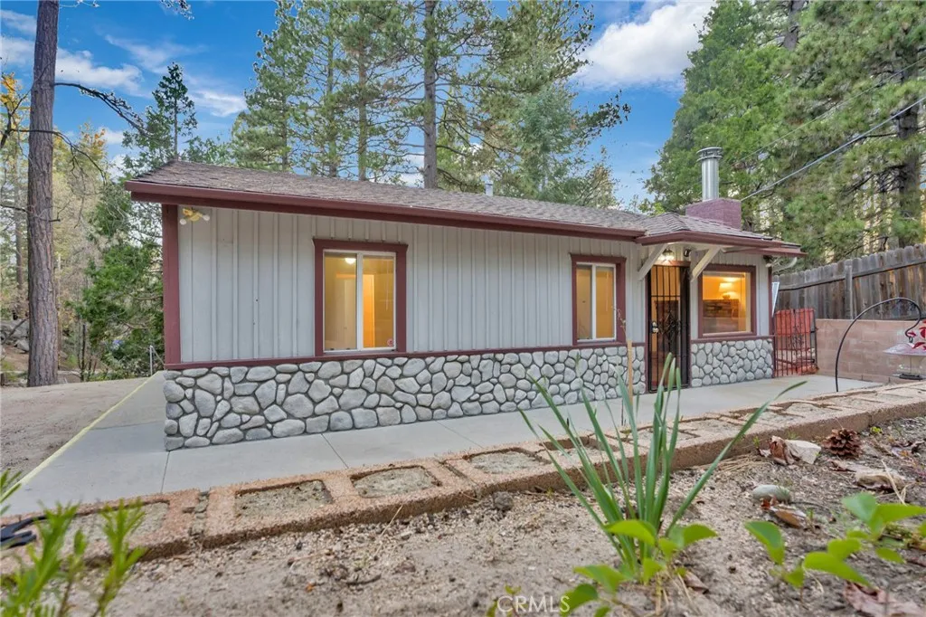 Experience the upcoming Winter Wonderland in your own private mountain retreat in the coveted Nordic Track of gorgeous Running Springs! Imagine waking up to the crisp mountain air in this charming, newly renovated SINGLE STORY cabin, perfectly blending rustic charm with modern comforts. This 858 square foot home is nestled on a wooded corner lot, providing both privacy and convenience. Step inside and be greeted by an open and airy living space bathed in natural light. The main living area centers around a cozy fireplace, perfect for chilly mountain evenings, while large windows invite the outdoors in. This home features fresh paint and flooring, creating a bright and inviting atmosphere. The thoughtful blend of timeless cabin aesthetics and contemporary updates ensures a truly comfortable and stylish living experience. The fully equipped kitchen, with stainless steel appliances, is perfect for preparing delicious meals after a day exploring the stunning natural surroundings. A separate utility room provides storage space for all your needs, while the back patio is an ideal spot for relaxing, entertaining guests, or simply enjoying the tranquility of the mountain setting. An additional outdoor storage shed offers secure space for your outdoor gear and seasonal items. Beyond the immediate comfort of the cabin lies a world of adventure. The National Forest is directly across the street, providing effortless access to a myriad of hiking and biking trails. Whether youre an avid outdoor enthusiast or simply enjoy leisurely strolls amidst nature's beauty, this location is idyllic