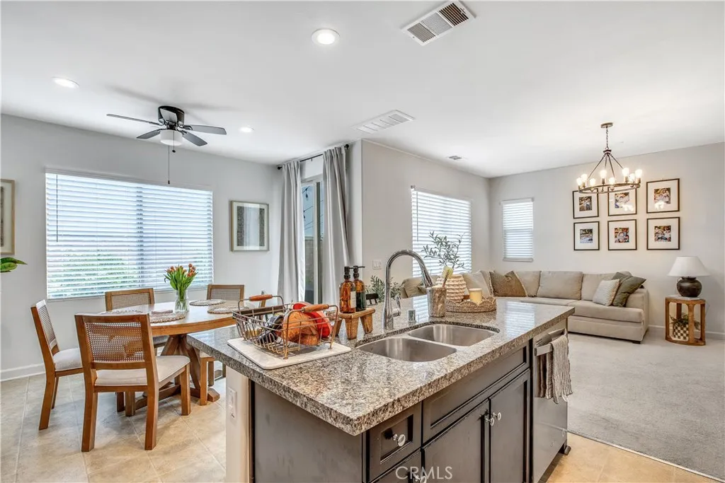 Located in the desirable The Preserve community of Chino, this beautifully designed two-story home welcomes you with a charming front porch and an inviting, open layout. Step into a bright foyer that leads to a convenient downstairs bedroom with a full bathideal for guests or multigenerational living. The heart of the home is the expansive open-concept living area, featuring a designer kitchen equipped with stainless steel appliances, ample counter space, and a large center islandperfect for meal prep and entertaining. A spacious dining area is accented by a large window, creating a warm, light-filled space for everyday meals and special gatherings. Upstairs, the luxurious owners suite offers resort-style comfort with an oversized walk-in closet, dual sinks, an oval soaking tub, a separate enclosed shower, and a private toilet area. Thoughtful details continue with an upstairs laundry room and additional well-sized bedroomsideal for a growing family or a home office setup. The Preserves resort-style clubhouse offers a wealth of amenities for residents to enjoy. Situated on a spacious three-acre site, the clubhouse features a fully equipped fitness center, a game room, and a variety of recreational options. Outdoor amenities include two lighted tennis courts, a junior Olympic-sized swimming pool, a relaxing barbecue area, and moreperfect for entertaining, staying active, or simply unwinding close to home.