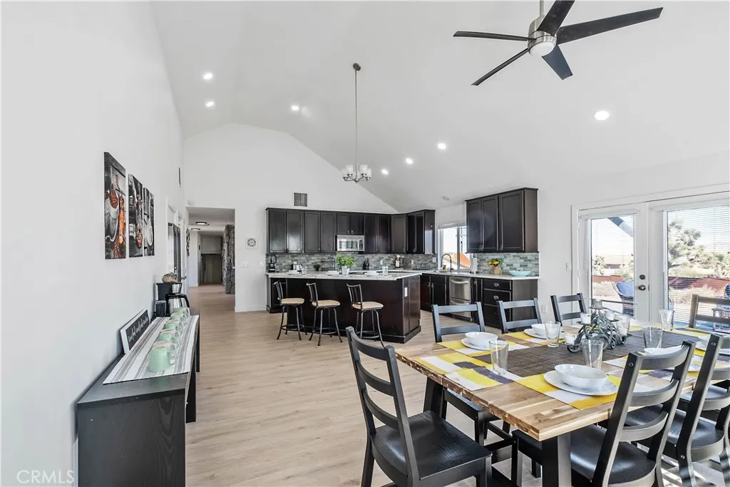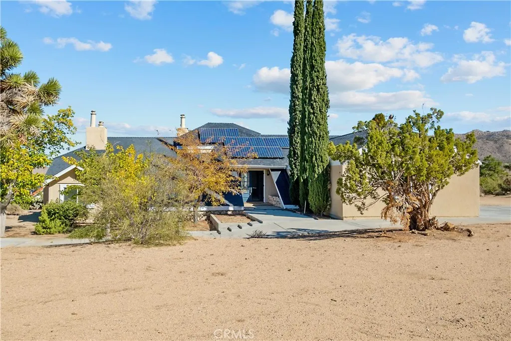 This Spacious, Absolutely Beautiful, and Fully Remodeled Chateau-Style Home in Upper Sky Harbor with leased solar is seated on 1.55 acres and surrounded by gorgeous views of the desert and surrounding landscape. This house has an extremely open floor plan, allowing for entertainment on a grand scale. This home boasts 3 bedrooms, 3 bathrooms, vaulted ceilings, an absolutely stunning and fully remodeled massive Kitchen with stainless steel appliances, Breakfast nook area, dining room, den/office, game room, Gigantic Living Room, Family Room, 2 outdoor patios with coverings, a huge horseshoe driveway, various tree/plants/vegetation, a SPA and so much more!!! Nearby to Parks, Trails, and the famous Joshua Tree National Park. This is perfect investment as a STR and/or a beautiful desert retreat. This home has been permitted with the city and is listed on all major STR sites including AirBNB/VRBO. COME SEE THIS BEAUTIFUL HOME TODAY!!!!