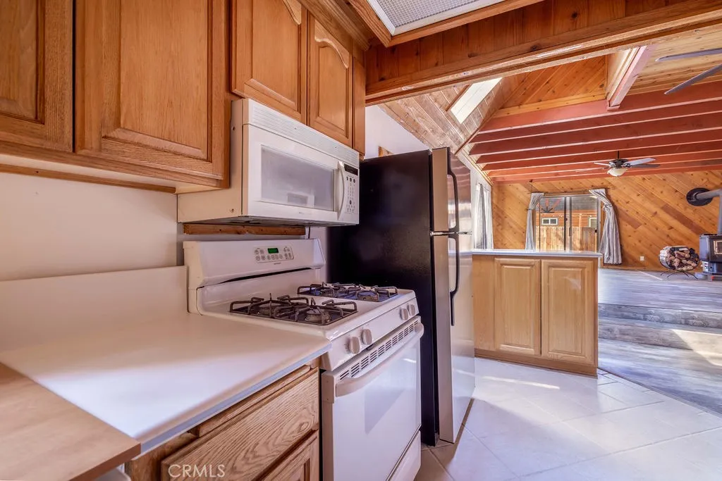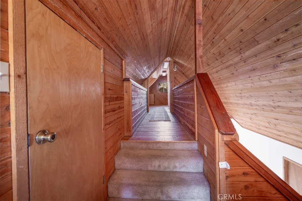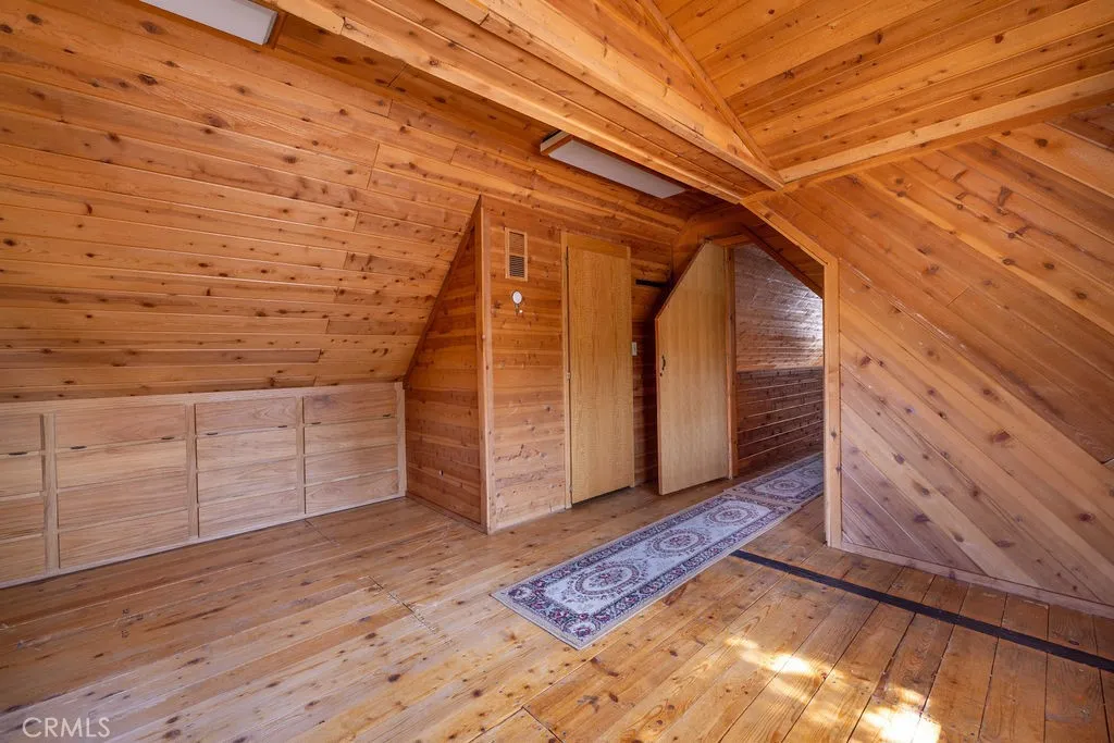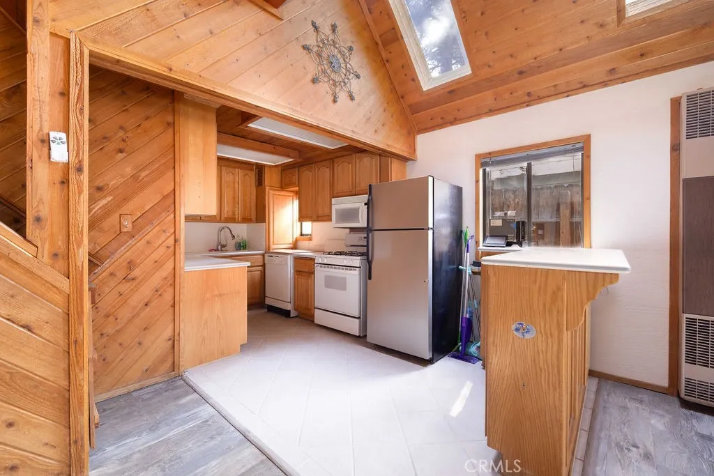 Rustic warmth, mountain charm, and room to breathethis Big Bear City gem near Shay Meadows offers the perfect blend of comfort and character. With 3 bedrooms, 2 full bathrooms, and approximately 1,570 sq ft, this inviting two-story home features vaulted T&G ceilings, exposed beams, and multiple skylightsincluding one above the breakfast barthat flood the living space with natural light. The spacious great room is anchored by a freestanding fireplace and flows effortlessly into the kitchen and dining area, where natural wood cabinetry and modern updates create a cozy yet functional hub. Two main-level bedrooms and two bathsone en-suiteprovide convenience and flexibility, while the upstairs loft offers a charming bonus space for guests, a studio, or a game room, complete with built-in storage and rich wood textures. Step outside and enjoy a fully fenced yard framed by mature trees, with a large deck and peek-a-boo views of Gold Mountain. Whether you're hosting friends, enjoying a quiet morning, or letting the kids run free, theres space here for it all. The oversized two-car garage includes laundry hookups, and the separate storage shedwith electricaladds even more utility for hobbies, tools, or creative projects. Just up the street, you'll find the Maple Hill trails for hiking and exploring, while local favorites like Community Market and Thelmas Family Restaurant are only minutes away. Plus, you're within a short drive to ski resorts, grocery stores, and the shimmering waters of Big Bear Lake. Come experience mountain living at its finest.