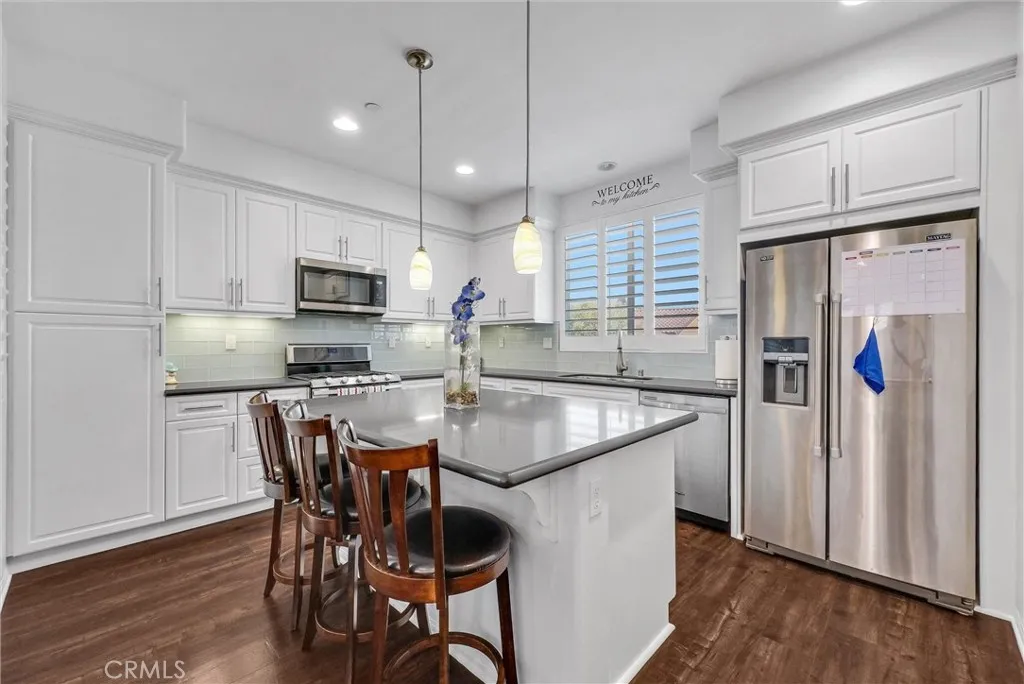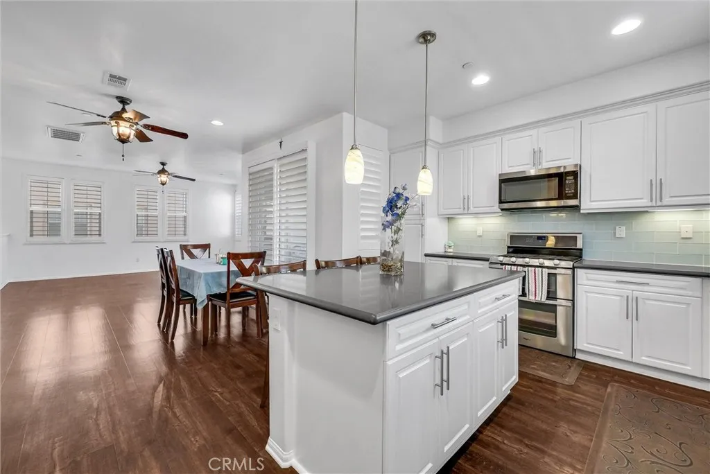 REDUCED PRICE AND An Assumable VA LOAN Discover this charming, highly upgraded tri-level townhome nestled in the prestigious Nexus gated community, offering resort-style living. This turnkey end-unit features four bedrooms, including a first-floor bedroom with a full bath, and three and a half bathrooms, along with a 2-car attached garage. The modern open-concept floorplan boasts upgraded plantation shutters throughout, and gorgeous wood laminate flooring on the second floor, a spacious living/dining area, and an oversized island in the fully renovated kitchen with quartz countertops, decorator tiled backsplash, stainless steel appliances including a double oven, dual pantries, and a private laundry room. To complete the upgrades this home has a whole house Lifesource water softener system. Natural light floods the home through recessed lights and dual-pane windows. The third floor hosts a beautiful primary bedroom with a walk-in closet and dual sinks, plus two additional bedrooms with their own full bathrooms. Enjoy outdoor living with patios on both the first and second floors. Paint has been recently touched up and has freshly cleaned carpeting, this stunning home is conveniently located near shopping, entertainment, restaurants, and major freeways, and is part of the highly desirable Roosevelt High School districttruly a must-see!