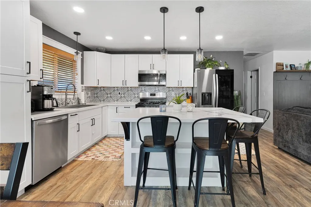 ** Back on Market with a $15K Price Improvement** Nestled in the desirable Erwin Lake area of Big Bear City, this beautifully maintained 3-bedroom, 3-bathroom home offers a rare layout with two spacious primary suitesan ideal setup for teens, extended family, or hosting guests. Sitting on a flat, usable lot, the property boasts a 2-car garage, RV/boat parking, and a fully fenced yardeverything you need for true mountain living. Inside, youll find a stunning, recently updated kitchen with crisp white shaker cabinetry, patterned tile backsplash, sleek quartz countertops, and a large center island with seating. Stainless steel appliances, modern pendant lighting, and thoughtful finishes make this kitchen the heart of the home. The open layout flows seamlessly into the bright dining area and out to the backyard through sliding glass doors, creating effortless indoor-outdoor living. The backyard is equally inviting, with a dedicated patio for relaxing, grilling, or gathering with friends. Mature trees add shade and privacy, while the fenced yard offers plenty of space for pets, play, or gardening. Located just minutes from Big Bears shops, restaurants, hiking trails, and lake activities, this home perfectly balances modern comfort and mountain charm. Whether youre seeking a full-time residence or a vacation retreat, this is a rare opportunity you wont want to miss!