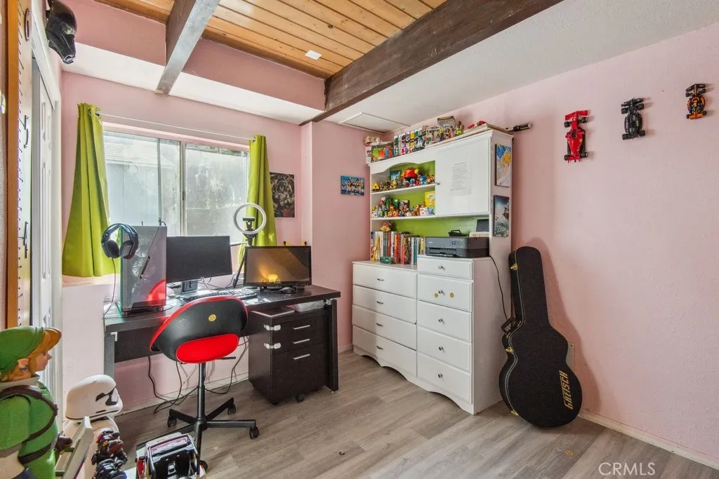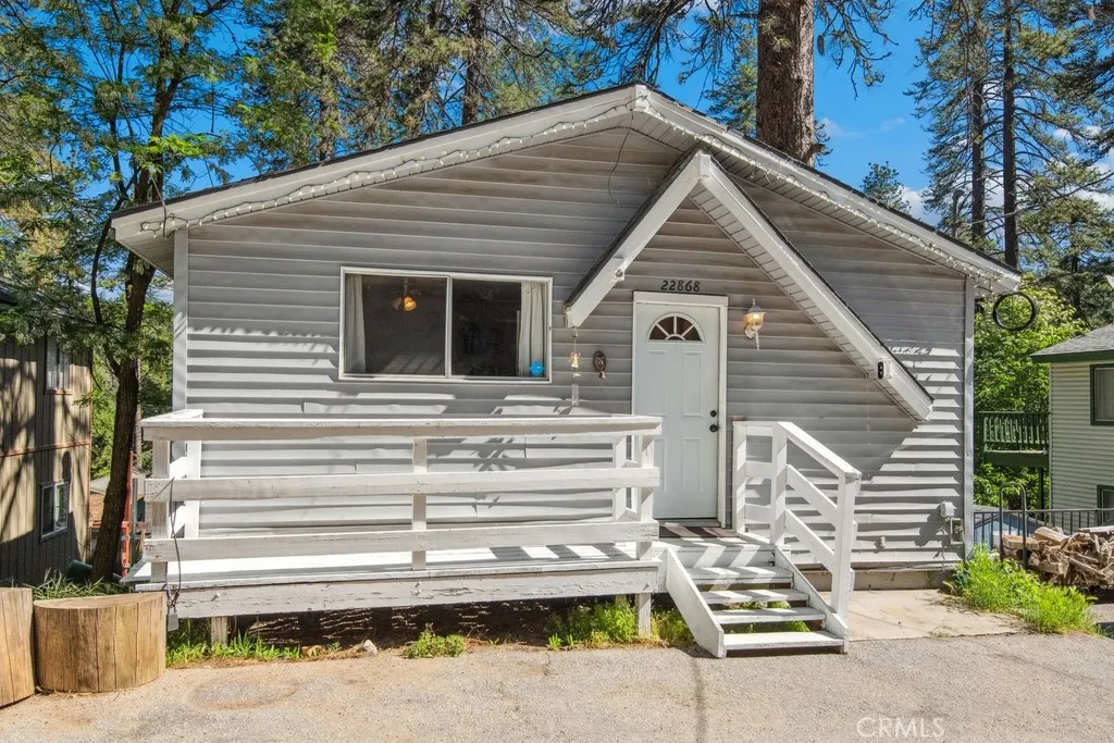 Charming Mountain Retreat. Spacious great room featuring soaring open-beamed ceilings, a wood-burning stone fireplace, and floor-to-ceiling windows that flood the space with natural light. A large deck off the living room offers the perfect place to relax and take in the peaceful surroundings. The open-concept living, dining, and kitchen area is ideal for gatherings, featuring vinyl flooring, recessed lighting, and a fully updated kitchen with granite countertops, stainless steel appliances (including a new fridge and dishwasher), and sleek cabinetry. A mini-split system provides efficient cooling year-round. The main level includes one bedroom and a full bath, while the lower level offers a spacious secondary living area with access to an additional deck and the backyard, two more bedrooms, and a bathroom with a walk-in showergreat for hosting guests or creating a separate living space. Additional features include a 10x10 Tuff Shed for storage and off-street parking for up to 4 vehicles. Whether you're looking for a full-time residence or a mountain getaway, this home has it all.
