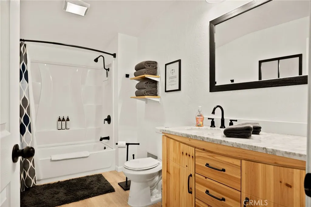 A Light, Bright Mountain Retreat in Crestline, CA! Welcome to your dream mountain getaway nestled in beautiful Crestline just 90 minutes from Los Angeles, the beaches, and the desert. This home is a sunlit sanctuary surrounded by soaring trees, offering the perfect blend of rest, relaxation, and adventure. Beautifully renovated with a new roof, high-efficiency dual-fuel HVAC and A/C, upgraded ductwork, composite decking, new flooring, fresh paint, and modern fixtures, this bright and airy home is move-in ready with major vacay vibes. At the heart of it all? One of two incredible decks is treetopped and cocooned by forest, ideal for morning coffee, golden hour wine, or watching the stars light up the night. Inside, the main level offers single-level living with two bedrooms, a full bath, and laundry off the open-concept living space. Downstairs, discover a dream suite featuring a second living area, a spacious primary retreat with a walk-in closet or private office, and a gorgeous ensuite bath. Level parking and style that sets the mood for chill. Plus, its already a permitted short-term rentalperfect as a full-time home, part-time escape, or income-generating investment. Minutes to flourishing downtown Crestline and scenic Lake Gregory, with its public beach, trails, paddleboard rentals, and a strong sense of community for those who crave connection, adventure, and a dash of peace.