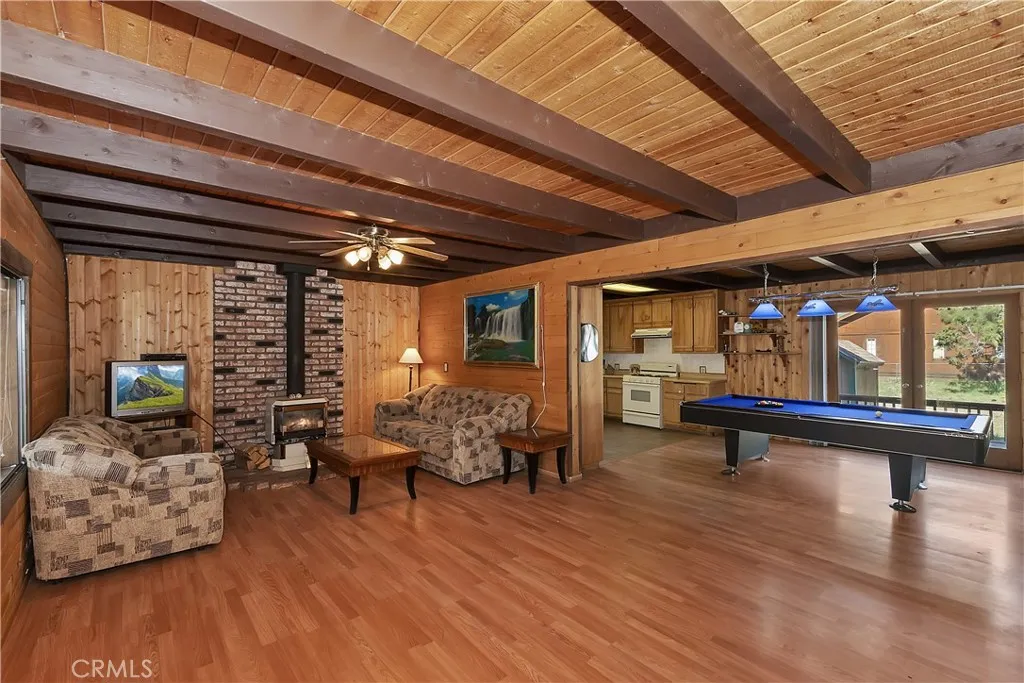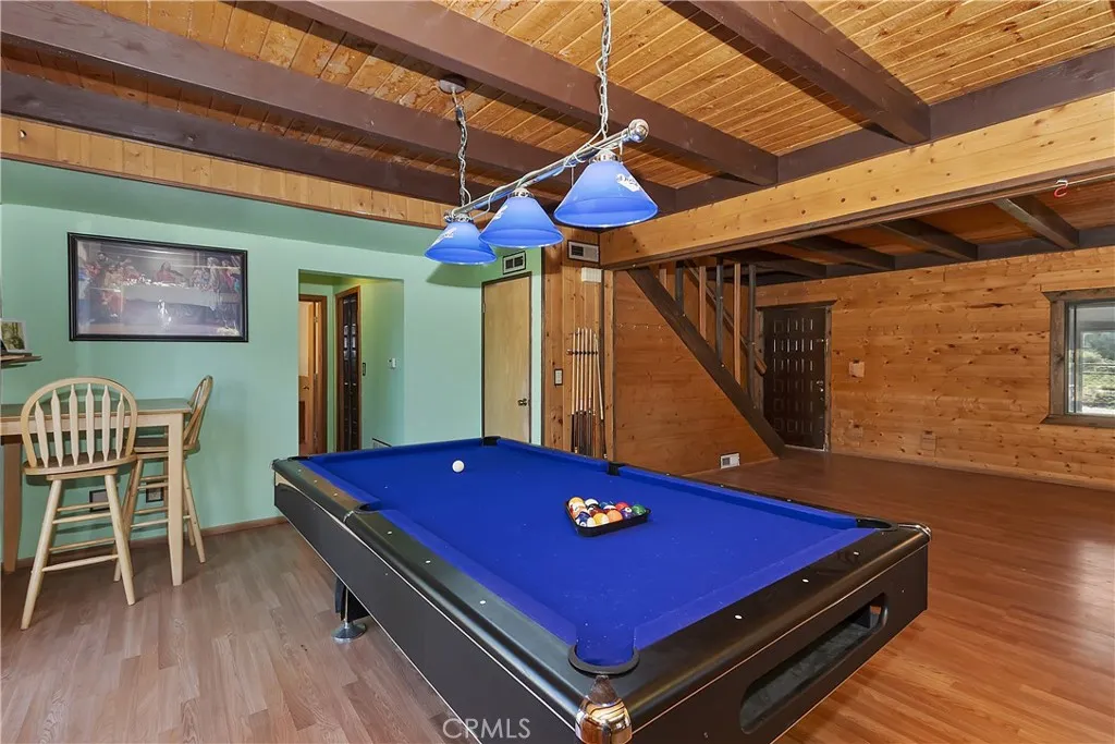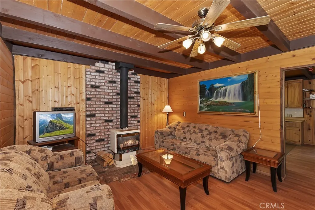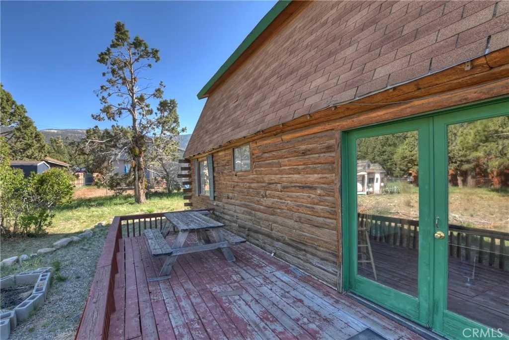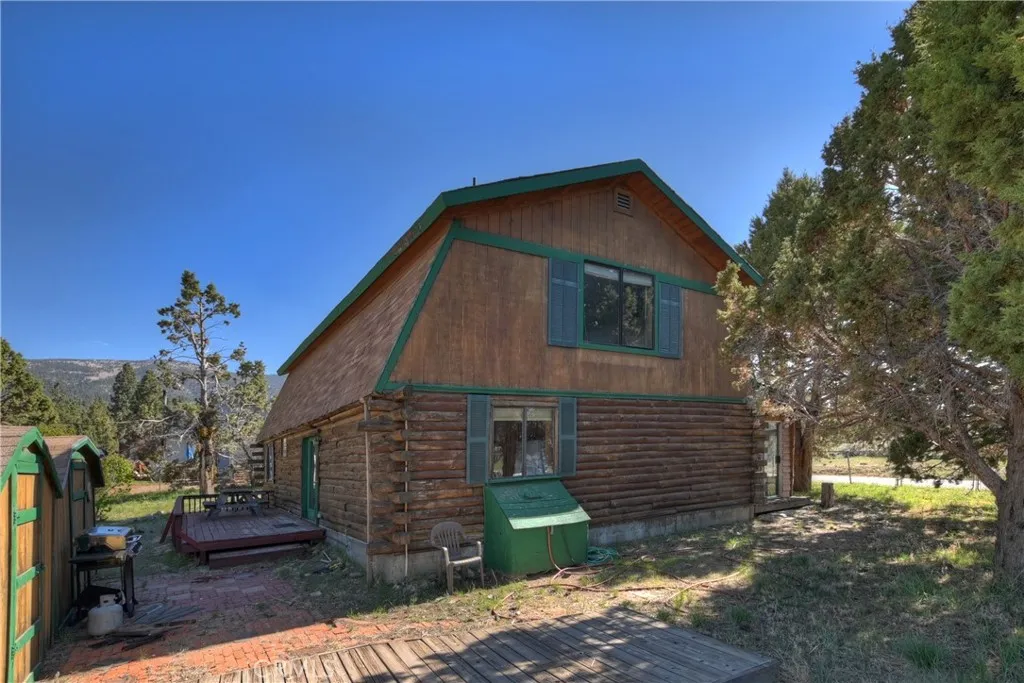 Sitting on a generously sized 15,000+ sq ft corner lot, this spacious 4-bedroom, 2-bathroom log home offers the rustic charm you are looking for. With 1,850 sq ft of living space, the open-concept layout is perfect for entertaining or simply relaxing in your peaceful surroundings. Step into the spacious country kitchen featuring a sliding door that opens to the fenced backyardideal for pets and outdoor gatherings. Enjoy the mountain air from the large deck, perfect for barbecues or stargazing nights. This home features a versatile floor plan with one bedroom and a bath on the lower levelgreat for guests or multi-generational livingand three additional bedrooms with a full bath upstairs. The level, concrete driveway leads to a 2-car garage with plenty of room for boat parking as well. Centrally located just minutes from Big Bear Lake, Erwin Lake Park, the tennis ranch, and local restaurants. With easy access to the school bus stop and year-round activities, this home is perfect as a full-time residence, vacation getaway, or investment property.