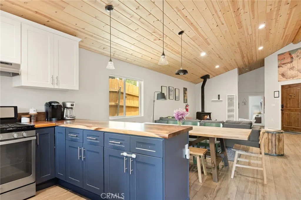 Welcome to your dreamy Big Bear Lake mountain retreat! This beautifully remodeled, single-story home combines rustic charm with modern upgrades, all in a prime, central location just moments from the lake, marinas, shopping, dining, skiing, and hiking trails. Walk inside and you're greeted by soaring T&G wood vaulted ceilings over an expansive, open-concept great room complete with a living room with a cozy wood stove fireplace, full-size dining area, laundry closet and fully-stocked kitchen, making it ideal for entertaining. Dual-pane windows throughout fill the space with natural light. This home features 3 generously sized bedrooms consisting of a primary suite, a fully-stocked kids room with bunk beds, and another large bedroom on the other end of the home, offering both privacy and comfort. Step outside to an expanded back deck, perfect for gatherings, and relax in the private spa just off the deckyour personal mountain sanctuary. Currently operating as a high-performing vacation rental, booked nearly every weekend, this home is ready for its next chapterwhether you're looking for a profitable investment or the perfect Big Bear getaway for you and your family. Don't miss this spectacular opportunity!