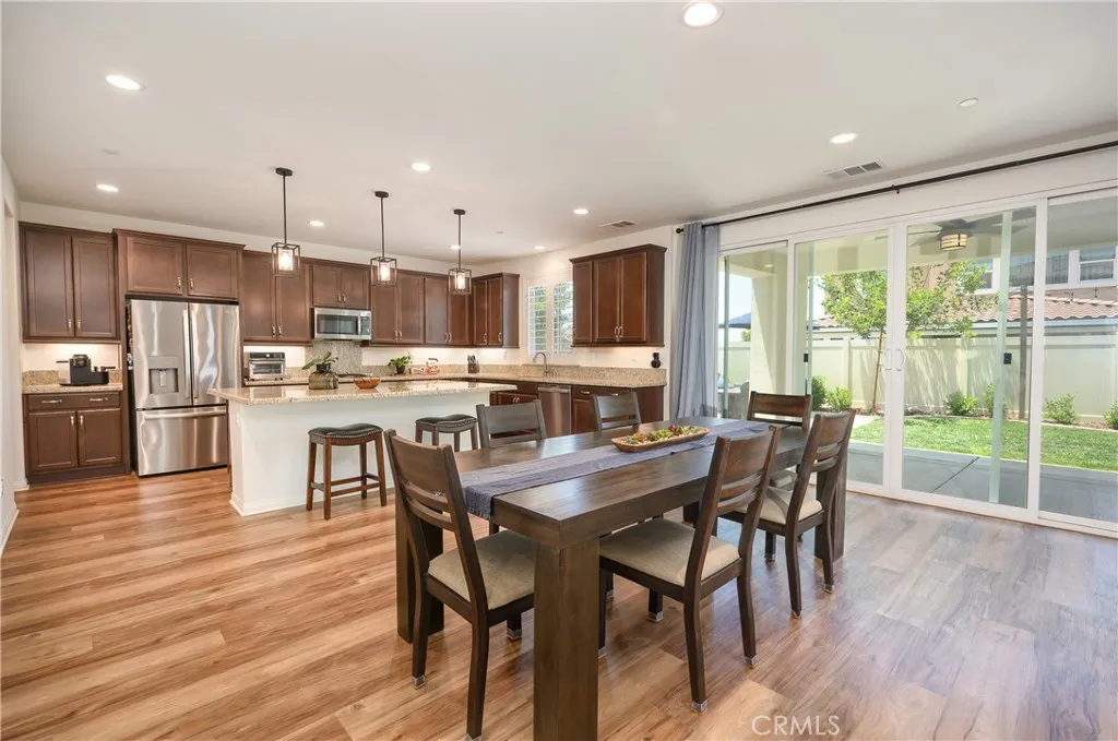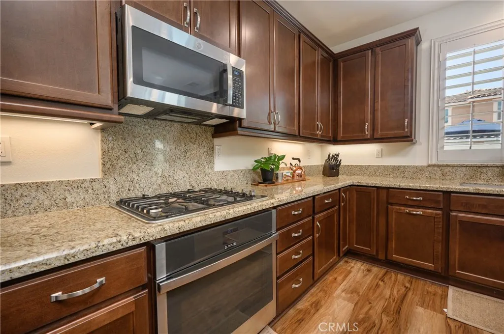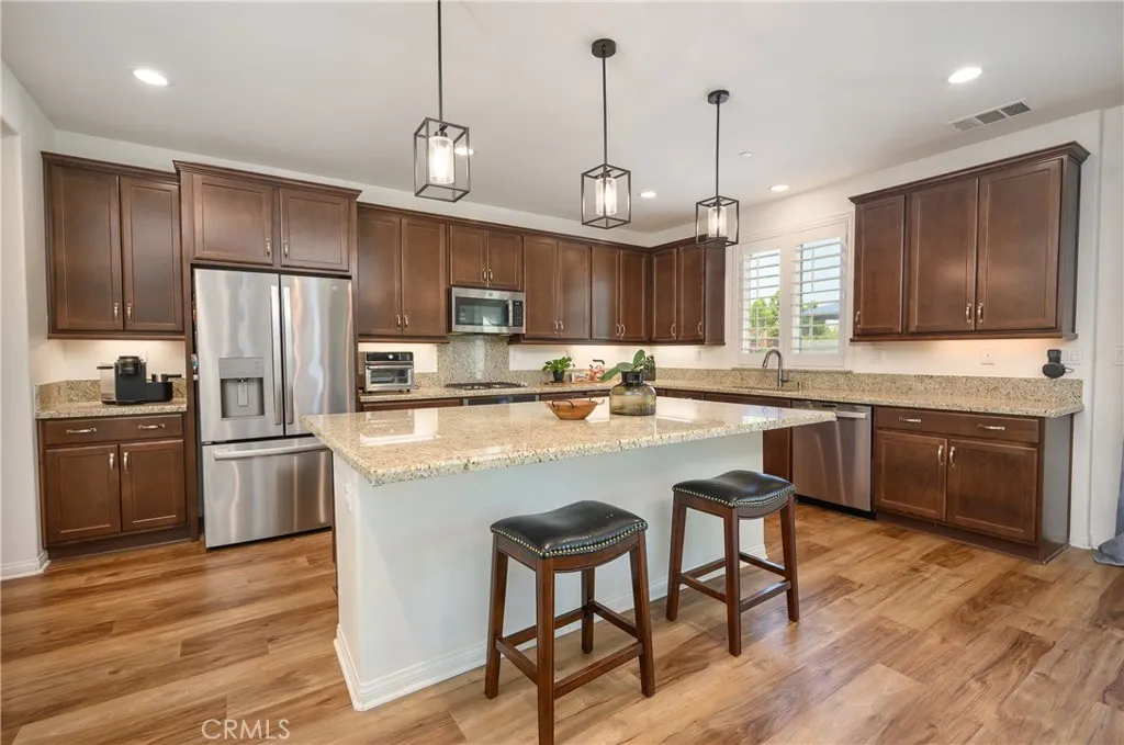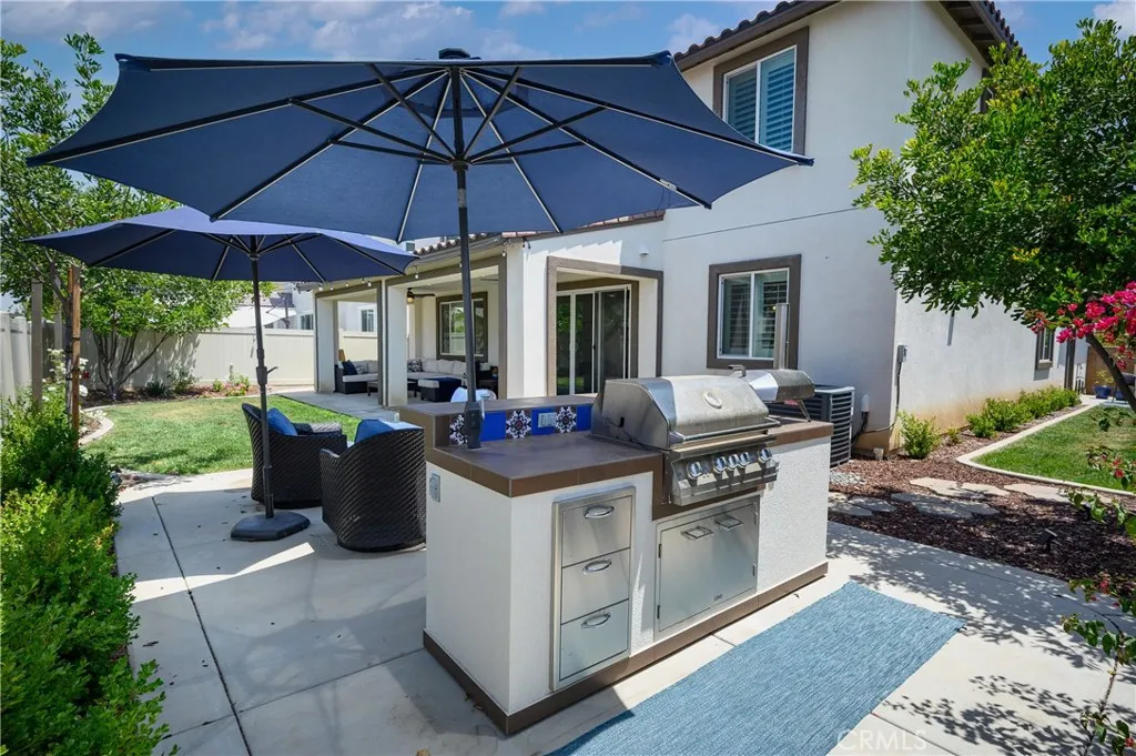 This stunning Mediterranean-style residence sits on a desirable corner lot in the heart of Spencers Crossing. From the moment you arrive, youll be captivated by the beautifully designed, lush landscaping and the elegant front arch entry adorned with decorative tileperfectly matched to the tile detailing on the backyard BBQcreating a cohesive and stylish exterior design. Step inside to a light-filled open floor plan featuring soaring ceilings and a dramatic staircase. Plantation shutters throughout add timeless elegance, while luxury vinyl flooring across the main level ensures both style and ease of maintenance. The spacious layout includes a welcoming front living area that flows into a generous family room with fireplace. The gourmet kitchen showcases abundant cabinetry, soft-close drawers, stainless steel appliances, a stylish backsplash, and an extended granite island. A convenient butlers pantry, complete with an oversized walk-in pantry. A thoughtfully located half bath on the main floor offers easy access for guests. Upstairs, youll find a large open loft filled with natural lightperfect as a media room, 4th bedroom or office, or play space. Nearby, a spacious laundry room adds everyday convenience. Two well-sized secondary bedrooms share a full bathroom with dual sinks, while the primary suite serves as a private retreat. The primary bathroom features a modern soaking tub, separate shower, dual vanities with quartz-style counters, and a generous walk-in closet. Step outside into your backyard sanctuary, where dual sliding glass doors bring the outdoors in and fill t