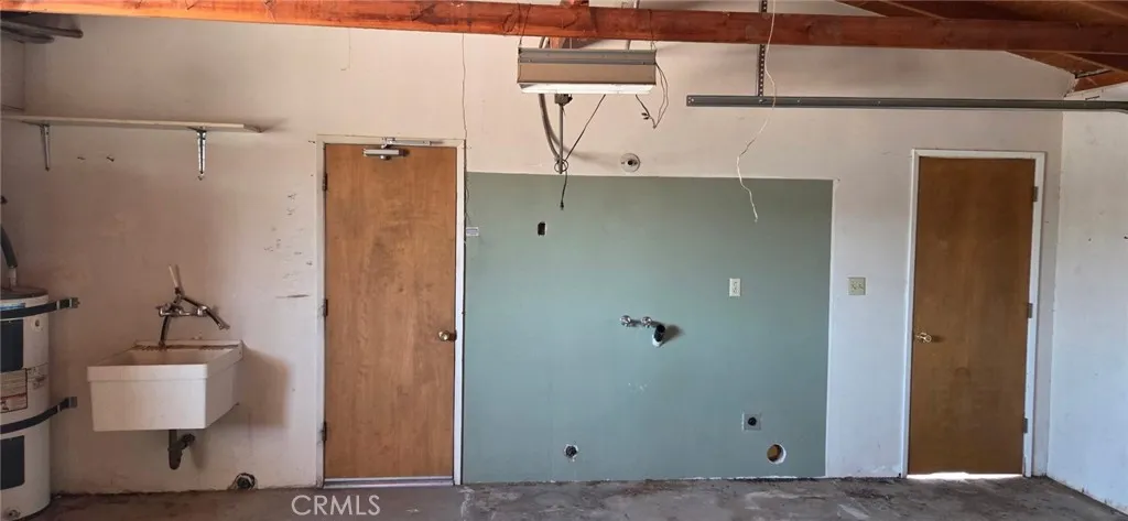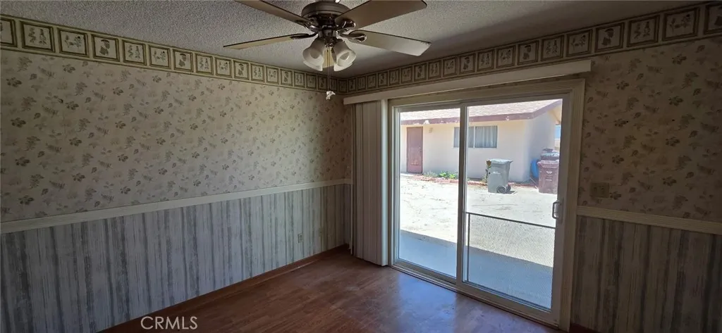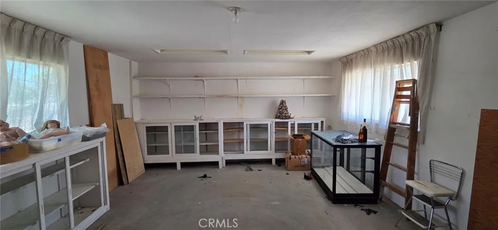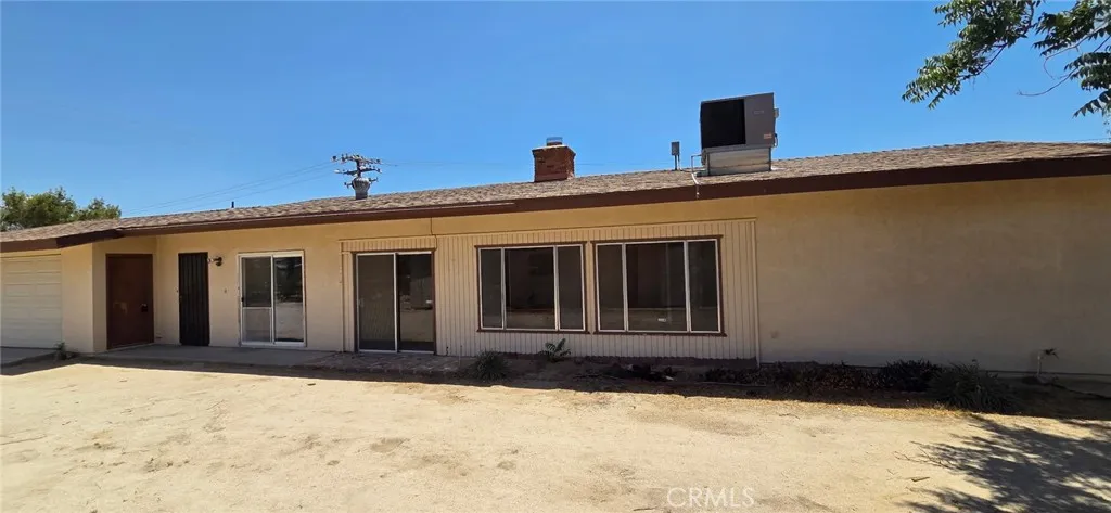 Welcome to this charming single-story home nestled on a spacious 27,225 sq ft lot. This 2-bedroom, 2-bathroom gem offers 1,807 sq ft of comfortable living space, perfect for those seeking both tranquility and functionality. Inside, you'll find a generously sized kitchen with abundant storage, ideal for any home chef. The inviting living room features a striking full brick wall featuring an offset fireplace, adding character and warmth to the space. Step outside to enjoy the serene desert landscaping, complete with iconic Joshua trees and a large patio areaperfect for entertaining or relaxing under the desert sky. As a bonus, the property includes a substantial secondary structure located at the rear of the lot. Whether you envision it as a workshop, studio, guest house, or additional storage space, the possibilities are truly endless. Don't miss the opportunity to own this unique desert retreat with room to grow and create!