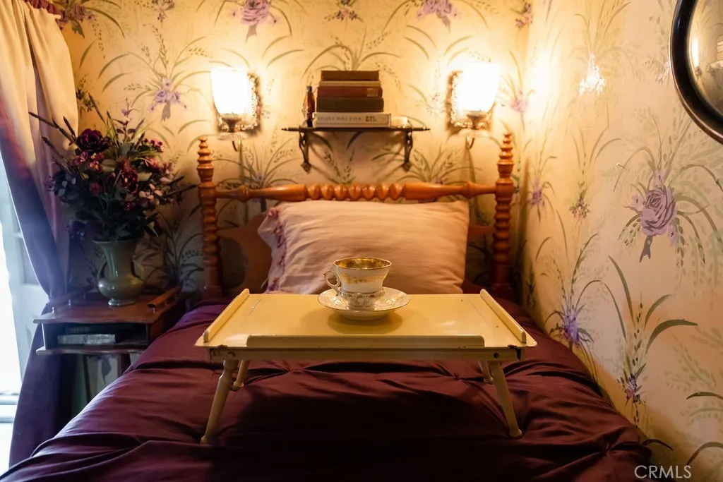 Step beyond the sunlit veranda and into a story only a few have lived. Originally curated and handcrafted by artist and designer Christine McConnell, this extraordinary home blends gothic romance, mid-century charm, and artisan craftsmanship across every inch from its hand-painted wallpaper to its vintage kitchen. Each room carries a distinct personality: a velvet-draped living room with hidden secrets, a sun-drenched retro kitchen with original appliances, a formal dining room bathed in gold tones, and a dreamy, light-filled primary suite with custom-painted details. Even the separate guest suite accessible via a secret trapdoor or its own private entrance evokes the charm of a bygone era. Set on an expansive 18,523 square foot lot, this rare beauty from 1937 offers rare seclusion and presence in a neighborhood of more modest parcels. Framed by towering trees and three wide decks, the home feels worlds away yet remains entirely grounded in its thoughtful design. Lovingly preserved and thoughtfully updated, the home offers a rare chance to own a piece of living artwork. A true icon, it served as the original filming location for the pilot episode of The Curious Creations of Christine McConnell and continues to enchant guests and fans alike. This is not just a house. This is a curated experience a collectible ready for its next caretaker. May be available furnished, for those who understand its magic.