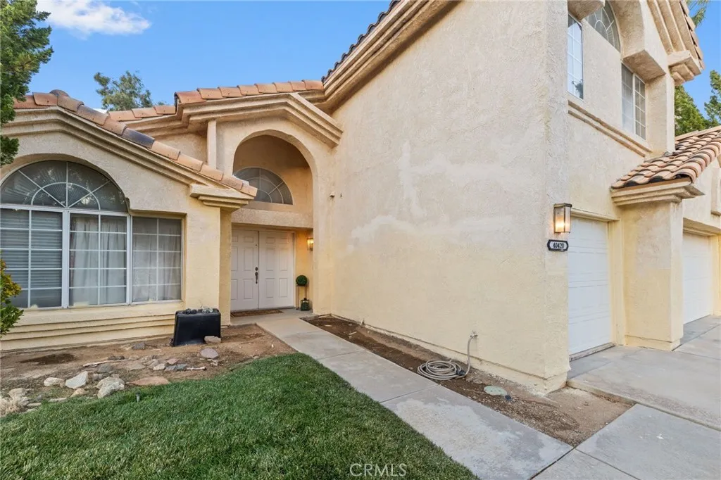 West Palmdale beauty. Located in the desirable Rancho Vista community of West Palmdale, a perfect blend of comfort and sophistication. An expansive residence offering 5br/3ba, living 2603 sq ft with 3 attached garages. Recently updated main bedroom and kitchen with quartz counter, fireplace and wet bar, perfect for entertainment and special gatherings. One downstairs bedroom with full bath for extended family and 4 large bedrooms upstairs including main with fireplace and walk-in closet. Newly installed Tankless water heater and Tesla solar system with backup/storage batteries that provides enough power for your every need. Panoramic views of the valley from the main bedroom and backyard. Also listed on FLEXMLS# 25006650 Dont miss out on this exceptional opportunity to own your dream house. Schedule your private tour today and envision this beautiful property as your own.