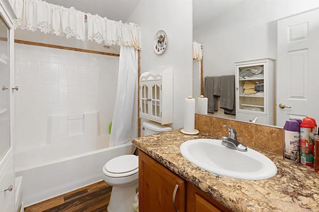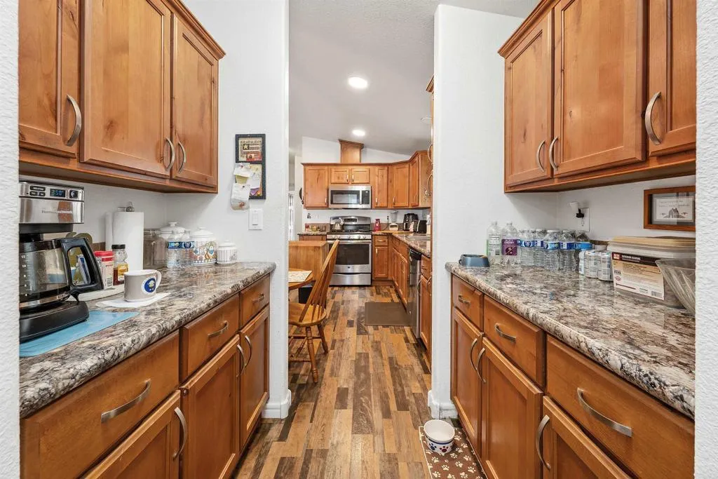 Gently lived in 10 year old Cavco Home with three bedrooms, 2 full baths and 1597 square feet. Prime location in a premier senior park at top of hill to enjoy cool summer breezes. Lovely open floorplan with large chefs kitchen, granite like counters and stainless steel appliances, plus butler's pantry. Large room sizes include 3 generous bedrooms, wonderful living room and dining room for entertaining and both front and back porches. Primary Bedroom is used as sitting room and has two linen closets, walk-in closet, dual sinks in bath and walk-in shower - plus access to back porch. All appliances convey, including Flatscreen above built-in in primary suite. Privacy plus mature landscaping create a comfortable easy care home. Seller has priced home below market for quick sale. Home has a 433A certification of a permanent foundation, and is real property not personal property. The Meadows is a HOA/condo ownership park with long term leases and low HOA fees of $319 include space fees, water, all amenities and cable television. Residents enjoy a variety of social activities, year round heated salt water pool & spa, pickleball/tennis courts, fitness center, library, putting green, and wonderful community clubhouse which is also available for private functions for a fee. RV & boat parking on site for a fee as well. Located within easy drive of shopping, medical and entertainment plus the charming town of Alpine is less than 5 miles away.