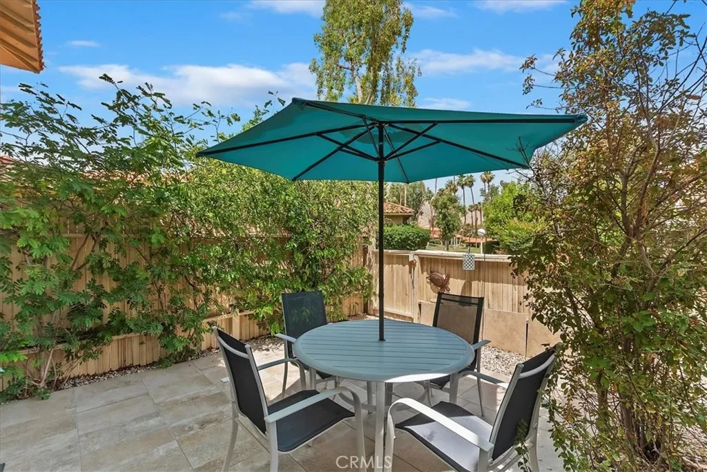 Dont miss this opportunity to own a beautifully updated 2-bedroom, 2.5-bath, 1,258 square foot townhome in the highly desirable Deep Canyon Tennis Cluba gated community known for its active lifestyle and outstanding amenities. Perfectly located in prime South Palm Desert, youre just minutes from El Paseos world-class shopping, dining, and entertainment. Inside, the light-filled open-concept layout features diagonally laid tile flooring, newer windows, and a spacious living room that flows into a separate dining area and updated kitchen. The kitchen offers recessed lighting, ample cabinetry, a pantry, double sink, range, built-in microwave, and dishwasherperfect for both everyday living and entertaining. A wet bar adds a stylish touch for hosting. A downstairs half bath and in-unit laundry with washer and dryer provide added convenience. Upstairs, two generously sized primary suites each feature their own en-suite bathroom, mirrored closet, and ceiling fan, making this home ideal for full-time living, guests, or flexible seasonal rental use. French doors open to a private patioa tranquil spot for outdoor dining or relaxing with scenic mountain views. Additional highlights include custom plantation shutters and a prime location near hiking trails, parks, and top-rated schools. Deep Canyon Tennis Club offers an abundance of resort-style amenities including 12 swimming pools, 4 hot tubs, 12 tennis courts, 6 pickleball courts, a bocce ball court, putting green, dog park, fitness center, and a welcoming clubhouseall beautifully maintained and ready to enjoy. Whether youre seeking
