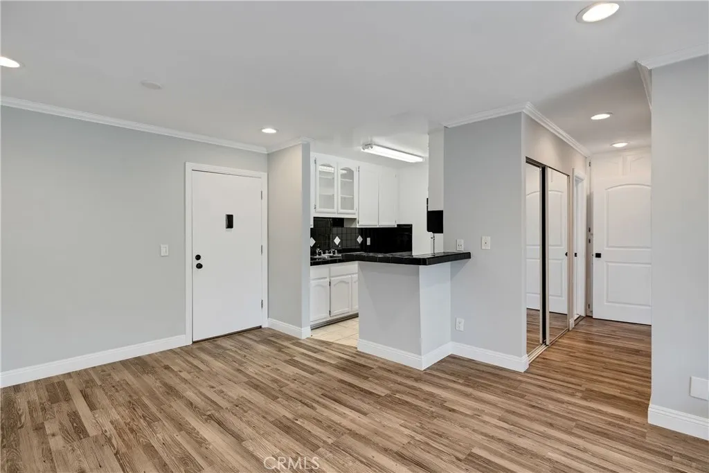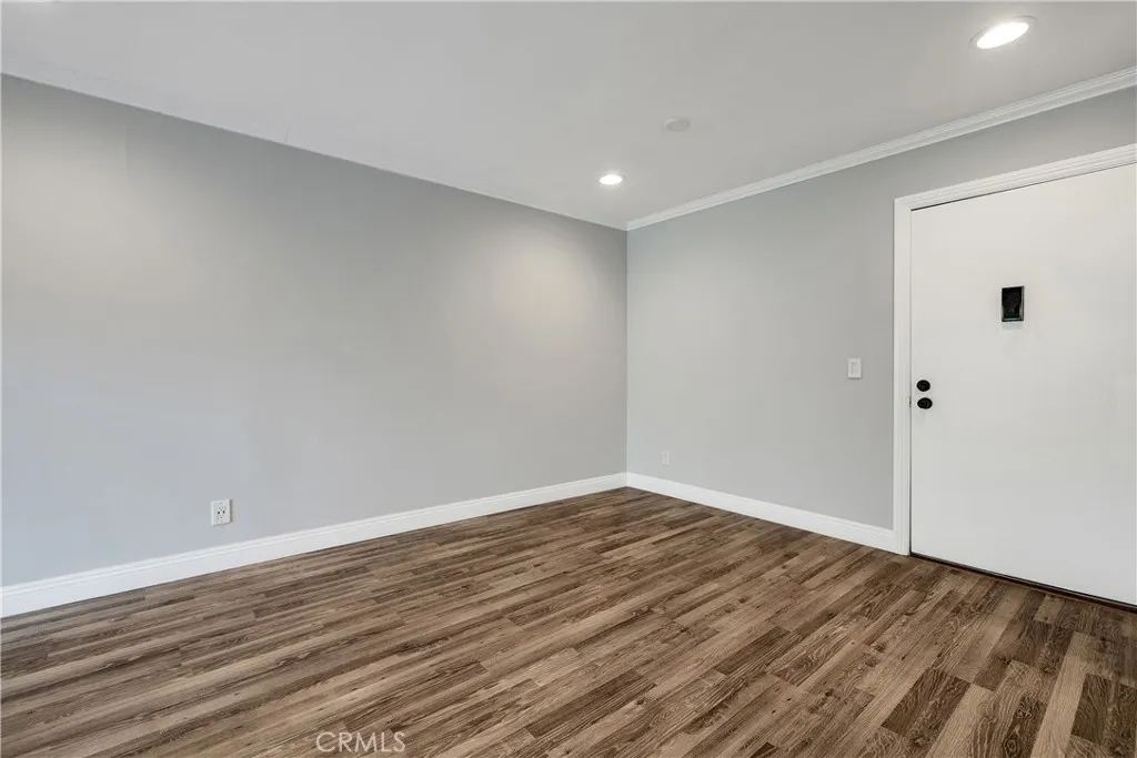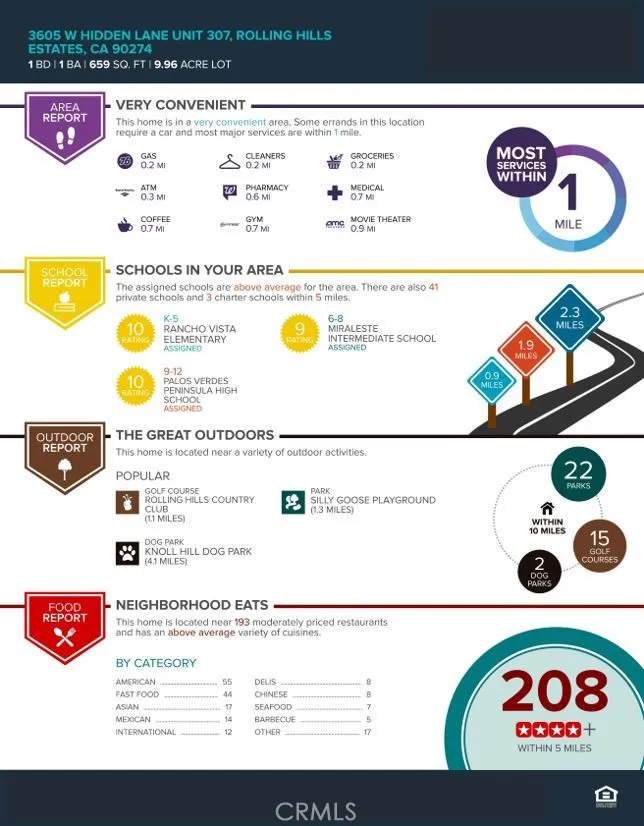 Welcome to the exceptional opportunity to own a penthouse condo in the heart of prestigious Rolling Hills Estates, one of the most serene and sought-after communities on the Palos Verdes Peninsula. This top-floor residence is set within the beautifully landscaped, resort-style community of "The Estates," just moments from award-winning schools, scenic coastal trails, equestrian centers, and the breathtaking South Coast Botanic Garden, an 87-acre sanctuary where nature and tranquility flourish. Inside, you are welcomed by warm laminate flooring, recessed lighting with dimmers, and an open layout that exudes both comfort and timeless elegance. The living areas extend effortlessly to a spacious private balcony, perfect for al fresco living. Enjoy serene treetop views and, on clear days, catch glimpses of the shimmering downtown Los Angeles skyline and San Gabriel Mountains. The kitchen features functionality and design, including a glass-top stove, a sleek stainless steel Bosch dishwasher, and generous cabinetry for easy, stylish living. Whether you are hosting guests or enjoying a quiet morning, the space is equally inviting and refined. The bedroom is a relaxing retreat with direct access to the balcony, perfect for enjoying fresh morning air or golden hour light. It also features a large walk-in closet with built-in shelving, offering plenty of room to stay organized with ease. The bathroom maintains a polished feel with marble floors and a marble walk-in shower, offering a clean and sophisticated atmosphere. Mirrored hallway closet doors enhance both light and storage, whi