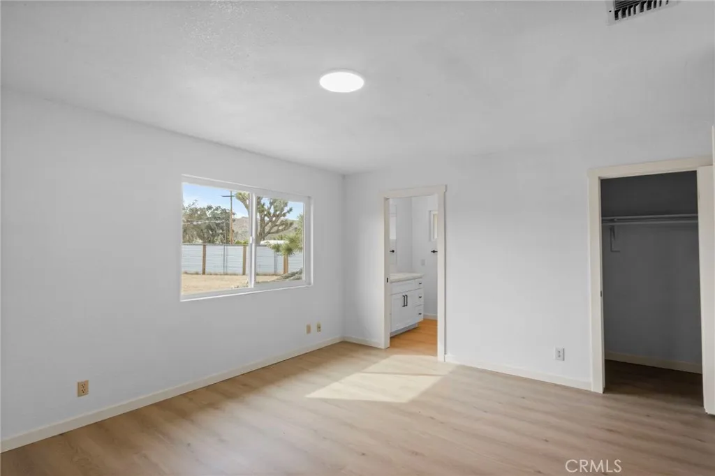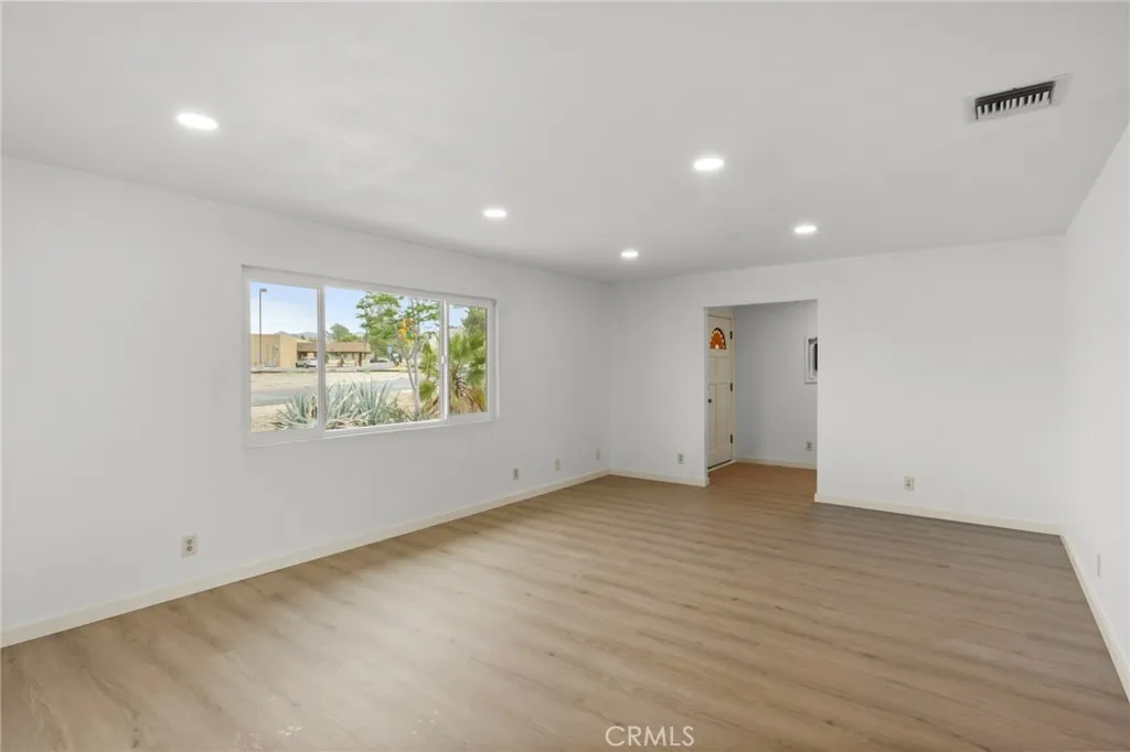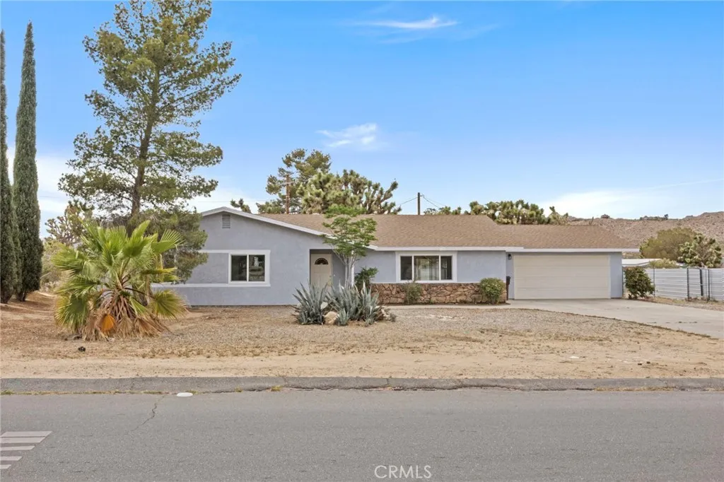 Welcome to 7010 Airway Ave. a clean, spacious 3-bedroom, 2-bath home on a 15,250 sq ft lot in the heart of Yucca Valley. The home offers 2,158 sq ft garage included in square footage! giving you plenty of space to work with inside and out. Step into an open layout with fresh interior and exterior paint, all new dual-pane windows, recessed lighting, and wide-plank wood-look flooring throughout. The kitchen features white shaker cabinets, quartz-style counters, matte black fixtures, and brand-new stainless-steel appliances. Both bathrooms are fully updated with modern vanities, full tile surrounds, and clean finishes throughout. The bedrooms are spacious, the indoor laundry has extra storage, and the backyard offers a covered patio and tons of open space framed by mature Joshua Trees. Located minutes from local dining, shops, and Joshua Tree National Park this home blends modern touches with classic desert vibes and is ready for itsnextchapter.