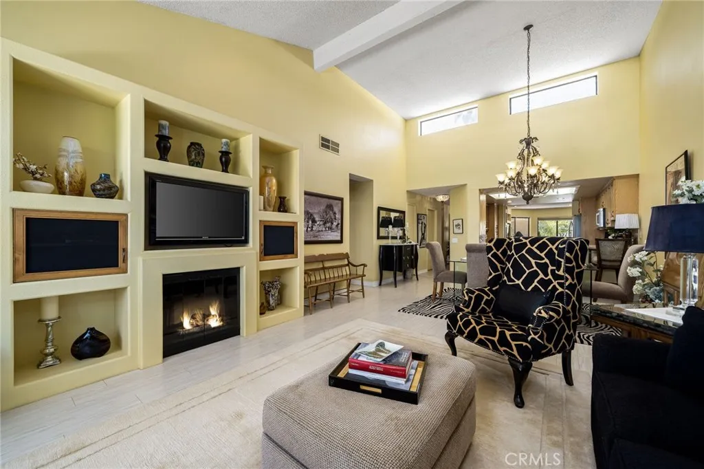 Significant Price Drop!Welcome to your desert getaway in Palm Valley Country Club. This property overlooks the 5th green of the Championship course, one of two Ted Robinson Designed courses. With an elevated lot, it allows fantastic views of the course, water and mountains! This nicely updated 2BR| 2BA condo welcomes you with a large private courtyard with awning creating a wonderful outdoor living space. Once inside enjoy the cozy den with a fireplace to your left, a great spot for a good book, quiet conversation, or your favorite tv show. The open concept, updated kitchen with stainless appliances offers golf course views while entertaining family and friends. There is a nice sized dining space and another living space right on the course! Two bedrooms each on one end of the home allow guests to have their own space. The generous primary suite sits on the golf course and the guest room near the front courtyard. The beautiful back patio is perfect for relaxing with expansive views and comfortable ambiance. Palm Valley CC is a sought after gated community enjoyed by full time residents, snowbirds or investors looking for rental income. Two Ted Robinson courses, multiple pools, tennis, pickleball, a clubhouse with and activities galore there is something for everyone.