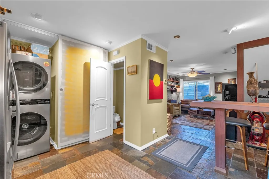 Welcome to 19846 Lures Lane, a stunning modern-rustic townhome located in the highly sought-after Village Townhomes community of Huntington Beach. This beautifully updated 2-bedroom, 1.5-bath home offers an open and inviting floor plan designed with both comfort and style in mind. Step into a warm and thoughtfully designed living space featuring recessed lighting, a cozy fireplace, a mounted flat-screen TV, a video projection setup, and large dual-pane energy-efficient windows that offer serene views of the lush greenbelt and sparkling community pool. The remodeled kitchen is a showstopper, featuring custom wood cabinetry with glass inserts, tile countertops, a breakfast bar, stainless steel appliances, and a gas range. The charming garden window overlooks your private backyard patio retreat perfect for relaxing or entertaining. Design highlights throughout the home include a sophisticated blend of natural wood, stone, custom tile work, and tasteful glass and metal accents, bringing a unique and elevated look to every space. Residents of the Village Townhomes enjoy a wide array of amenities, including a resort-style pool, a keyed and lighted tennis court, two basketball courts, a childrens jungle gym and play area, a spacious open park, and additional permit parking. Ideally located just minutes from the beach, shopping, dining, and top-rated schools this is Huntington Beach living at its finest!