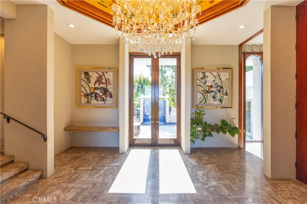 Welcome to 23615 Falcons View Drive a truly exceptional estate located in the prestigious, guard-gated community of "The Country" in Diamond Bar. Set on nearly 2 acres of private, usable land, this one-of-a-kind custom home was thoughtfully designed to embody architectural artistry, intentional flow, and timeless sophistication. Spanning over 6,000 square feet, this estate blends artful design with elements of Frank Lloyd Wrights organic architecture and strategic orientation. Subtle Feng Shui principles guided the original layout promoting natural energy circulation, harmonious room placement, and a calming balance between openness and privacy. The 13-foot grand foyer immediately sets the tone, welcoming you with abundant natural light and striking symmetry. The layout is fluid, with wide hallways, and seamless transitions that create an effortless flow between living, entertaining, and retreat spaces. The home features 5 bedrooms and 7 bathrooms, including a private primary retreat with a spa-style bathroom, generous walk-in closets, a personal sauna, and a hot tub for the ultimate relaxation experience. A separate guest wing with its own maids kitchen provides ideal flexibility for long-term guests, multi-generational living, or staff quarters. At the heart of the home is a chefs dream kitchen, thoughtfully designed with top-tier appliances, abundant prep space, and direct access to the main living and dining areas perfect for entertaining or everyday culinary enjoyment. Additional highlights include a museum-style gallery wing, a dramatic sunken conversation lounge,