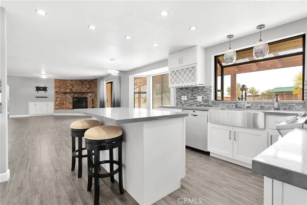PRICE IMPROVEMENT! Septic tank & Well have already been certified - all ready for new owners. Appraisal came in OVER VALUE - FHA buyer can step into INSTANT EQUITY!!. Are you looking for a TURN KEY property on over 2 ACRES of land, away from all the city noise with beautiful MOUNTAIN VIEWS? Then this FULLY RENOVATED home is the one for you! Located in South Apple Valley, this neighborhood is known for peaceful, rural living! Inside this 2900+ sq ft home is 4 bedrooms, 3 full bathrooms, 2 living areas, multiple dining spaces, a HUGE bonus room, and a convenient in-door laundry room. The entire home has NEW CARPET, NEW WOOD-LOOK TILE, NEW CABINETRY, NEW PAINT, and NEW MODERN FIXTURES. The family room has a cozy wood burning fireplace and is wired with BOSE speakers. The Kitchen comes ready with stainless steel appliances, tons of cabinets for storage, an island and breakfast nook for additional seating and a dry bar/beverage station. Right off the kitchen is a HUGE BONUS ROOM that carries so much potential. This Bonus Room has a large closet and a bathroom right off of it that could be used for a guest room or potential 5th bedroom. It would also make a great GAME/REC/PLAYROOM or large home office. There is also direct access to the backyard from this space. The indoor laundry has a large utility sink, more cabinets for storage and a folding station. The master suite has HIS & HERS closests, a soaking tub, walk-in shower, double sinks and makeup vanity. Storage is not lacking! The hallway cabinets provide so much extra storage and each room has charming BAY WINDOWS with stora