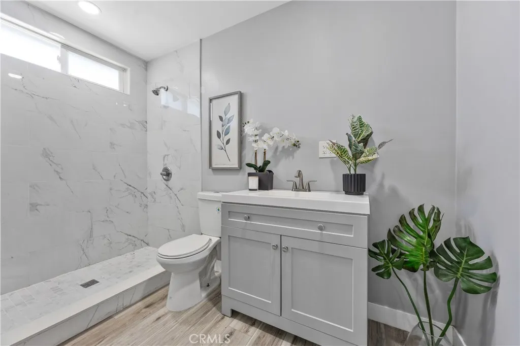Charming 3-bedroom, 1-bath home with 1,056 sq. ft. of living space on a 5,503 sq. ft. lot. The kitchen features quartz countertops, and theres a comfortable layout throughout. The garage has been converted into an ADU, offering extra space for rental income, guests, or a home office. Alley access adds convenience, and theres room in the yard for parking, gardening, or outdoor projects. A practical property with good potential in a usable layout.