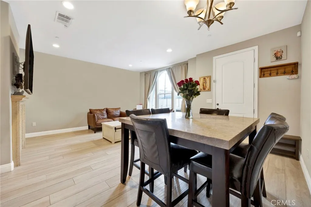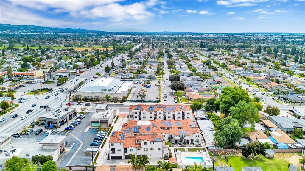 Nestled in the heart of Pico Rivera, this contemporary 3-bedroom, 3-bathroom townhouse offers a harmonious blend of style and functionality. The open-concept living area features a cozy fireplace, seamlessly flowing into a kitchen adorned with modern cabinetry and ample counter space. Upstairs, the expansive master suite boasts a walk-in closet and a private balcony, providing a serene retreat. Two additional well-sized bedrooms offer generous closet space and natural light. Laminate flooring throughout adds a touch of elegance and ease of maintenance. Enjoy outdoor living with a gated front patio and a second private patio accessible via sliding doorsideal for relaxation or alfresco dining. Additional amenities include a 2-car garage, tankless water heater, and community solar panels covered by HOA fees, helping to keep electricity bills low. The community also offers a large swimming pool and a private entrance for added convenience. Located just 9 miles from Downtown Los Angeles and 4 miles from Whittier College, this condo is close to schools, shopping, and recreational areas, making it an ideal place to call home. This is a must see!!!