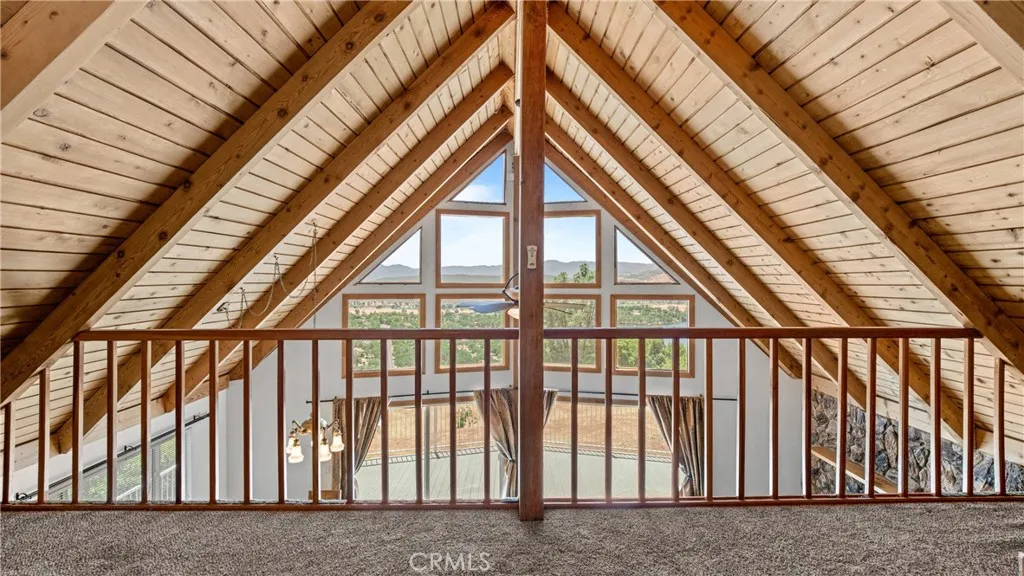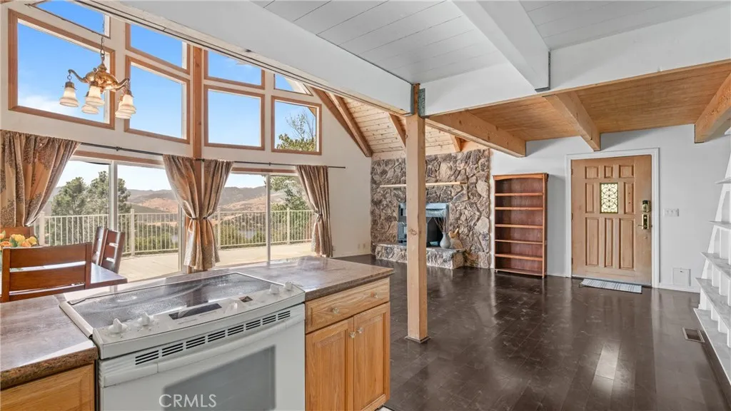 Welcome to 19383 Stonegate Road! Wonderful views and setting for this modified A Frame home... This property is really sweet & special inside with custom wood & open beam ceilings, the kitchen is updated with newer appliances & granite counter tops. The living/great room has a wood stove insert and soaring ceilings with sliding glass doors leading out to the large deck, enjoy the spectacular sunsets over the mountains and lake from here. The main level features two bedrooms, and a full bathroom. Walk upstairs to the delightful open loft area and from here to another bedroom which is spacious & bright, and here is also bathroom. Going downstairs with the option of a separate exterior entrance we have a fantastic large studio with open concept kitchen/living/bedroom, tiled floors and a neat bathroom. There is even a stacked washer and dryer here for added convenience. Sliding glass doors leads to a private concrete patio. Modest from the exterior, this home is full of delightful surprises. A must see to appreciate.