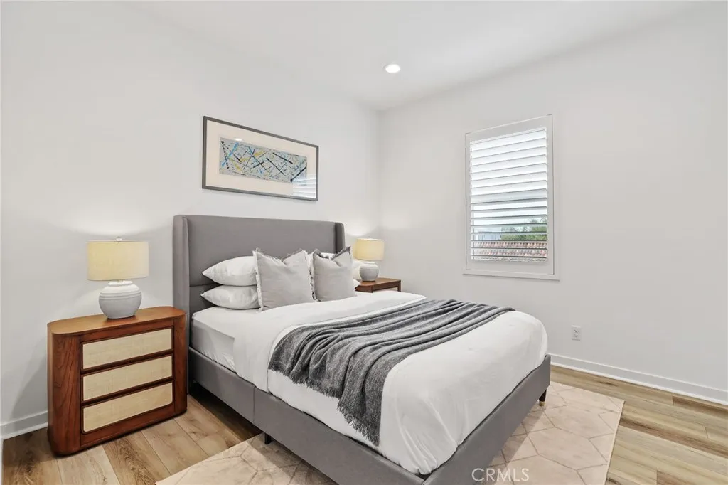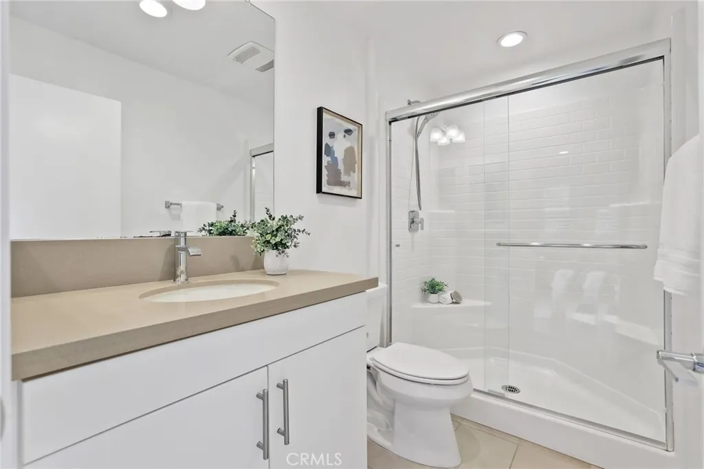 Welcome to Twenty8 Walk, a gated community of detached single-family homes in the heart of Costa Mesa. This residence, located in the communitys most desirable spot with a highly sought-after floor plan, offers a modern lifestyle and exceptional comfort. The main level features a spacious bedroom with private backyard patio access, a full bathroom, and an attached two-car garage with epoxy flooring. The second level boasts a bright, open-concept layout with a stunning kitchen, large island, stainless steel appliances, an enclosed balcony, a powder room, and shutters throughout. The top floor includes two bedrooms connected by a Jack-and-Jill bathroom, plus a primary suite with dual vanity, walk-in shower, and walk-in closet. Ideally situated near top schools, dining, shopping, golf courses, and the beaches of Newport Beach and Costa Mesa, this home also features owned solar panels and a tankless water heater.