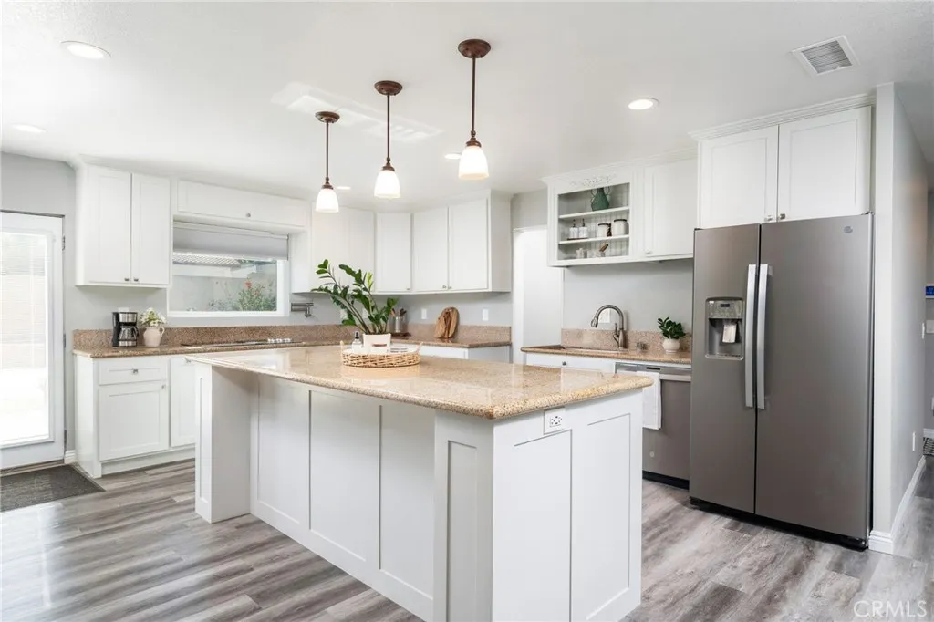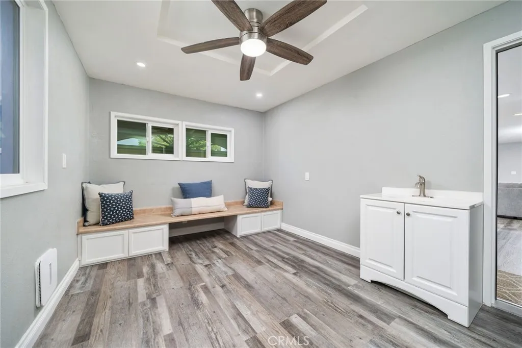Welcome to 1817 N Vallejo Way, Upland, CA 91784 a rare opportunity to own a fully contemporary rebuilt and professionally renovated single-story home in one of Uplands most desirable neighborhoods. This expansive property features 6 bedrooms, 4.5 bathrooms, and 3,098 SqFt of beautifully designed living spaceall completed with city permits. The home boasts a spacious open floor plan with brand new laminate flooring, a cozy fireplace, and recessed lighting throughout the kitchen, living room, and formal areas. Every detail has been thoughtfully upgraded, including new interior and exterior walls, reinforced roofing with brand new tiles, all-new plumbing with a tankless water heater, 2 brand new hvac systems and an upgraded electrical panel with complete rewiring. Five of the six bedrooms include full en-suite bathrooms, making it ideal for multigenerational living or hosting guests. A separate office space offers the perfect work-from-home setup. The large kitchen is a chefs dream, equipped with new appliances including a 36 electric cooktop, oven, dishwasher, and double-door refrigerator. It also features a large island, custom cabinetry, and a separate pantry area for ample storage. Laundry is made easy with two sets of washers and dryersone located in the master bedroom suite and the other in the hallway laundry room. The home offers 220V and gas hookups in both the kitchen and laundry areas for added flexibility as well as 4 full bathrooms with an additional half bath for guests. Outside, enjoy a beautifully landscaped front and backyard with new side gates and secure lo