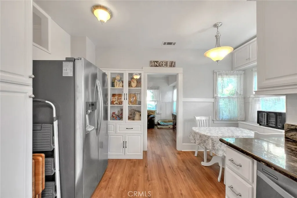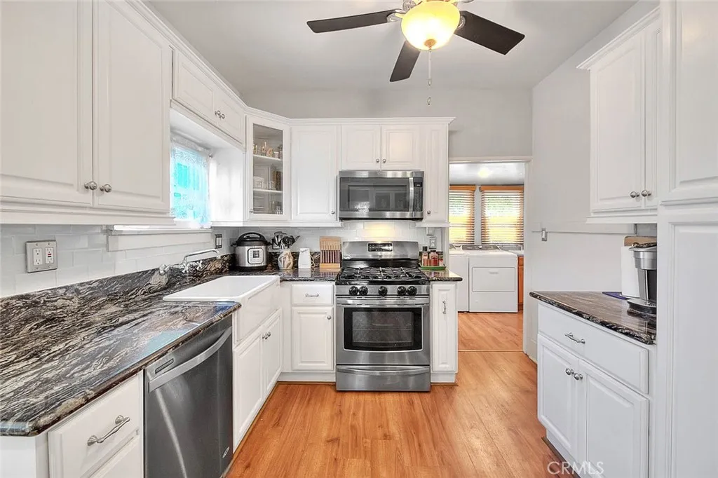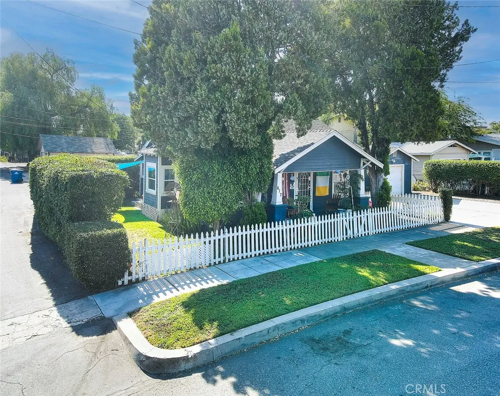 Welcome Home to this beautiful, vintage Ontario Craftsman with hard-to-find features! Cute as a button, with the perfect-sized front porch. Spend quality time with your family, friends, and pets here every day! This one-story home with basement includes two bedrooms and two - 3/4 bathrooms (one with a large step-in shower enclosure and the other with an vintage claw foot soaking tub. Front bedroom is currently used as the primary and 2nd bedroom through a jack-and-jill bath is currently used an office. Two closets in the 2nd bedroom with an abundance of storage! Impressive kitchen with high ceilings, a sunny breakfast nook, white cabinetry, and stunning granite countertops! Carefully selected upgrades include energy-efficient dual-pane windows, newer roof, plumbing, upgraded electrical panel, and new luxury vinyl plank flooring. Bring your RV and enjoy the full RV hookups. Last year, the sellers upgraded the main sewer line. Central air and heat, whole house fan, newer water heater, security system, and a spacious laundry room with built-in utility sink. This laundry area, flanked by the kitchen and second bedroom, is guaranteed to impress with plenty of counter space and cabinet storage! Convenient basement for additional space or storage. This unusual property also has an abundance of parking! Not only does it include a one-car detached garage with a private workshop, but the driveway can also accommodate 4 automobiles! The south side of the yard has roughly 8-foot-plus hedges for privacy, as well as a lawn/sitting/play area to enjoy the sunshine and outdoors! The rectang